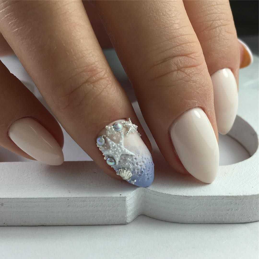 Выбирая украшения для ногтей с элементами морской тематики, необходимо обращать внимание на форму и длину ногтей, чтобы не испортить маникюр излишествами, или наоборот, чтобы было ощущение, что чего-то не хватает