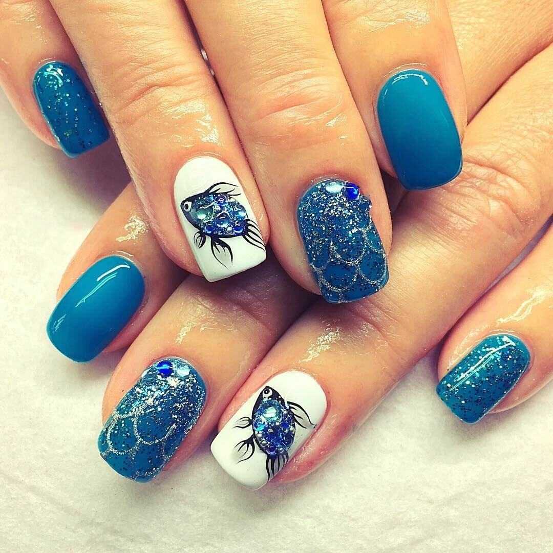 Однако этот перечень можно дополнить веселыми китами, смешными рыбками, загадочными русалками, изображением солидного компаса и силуэтами кораблей. Все зависит от настроения клиентки маникюрного салона.