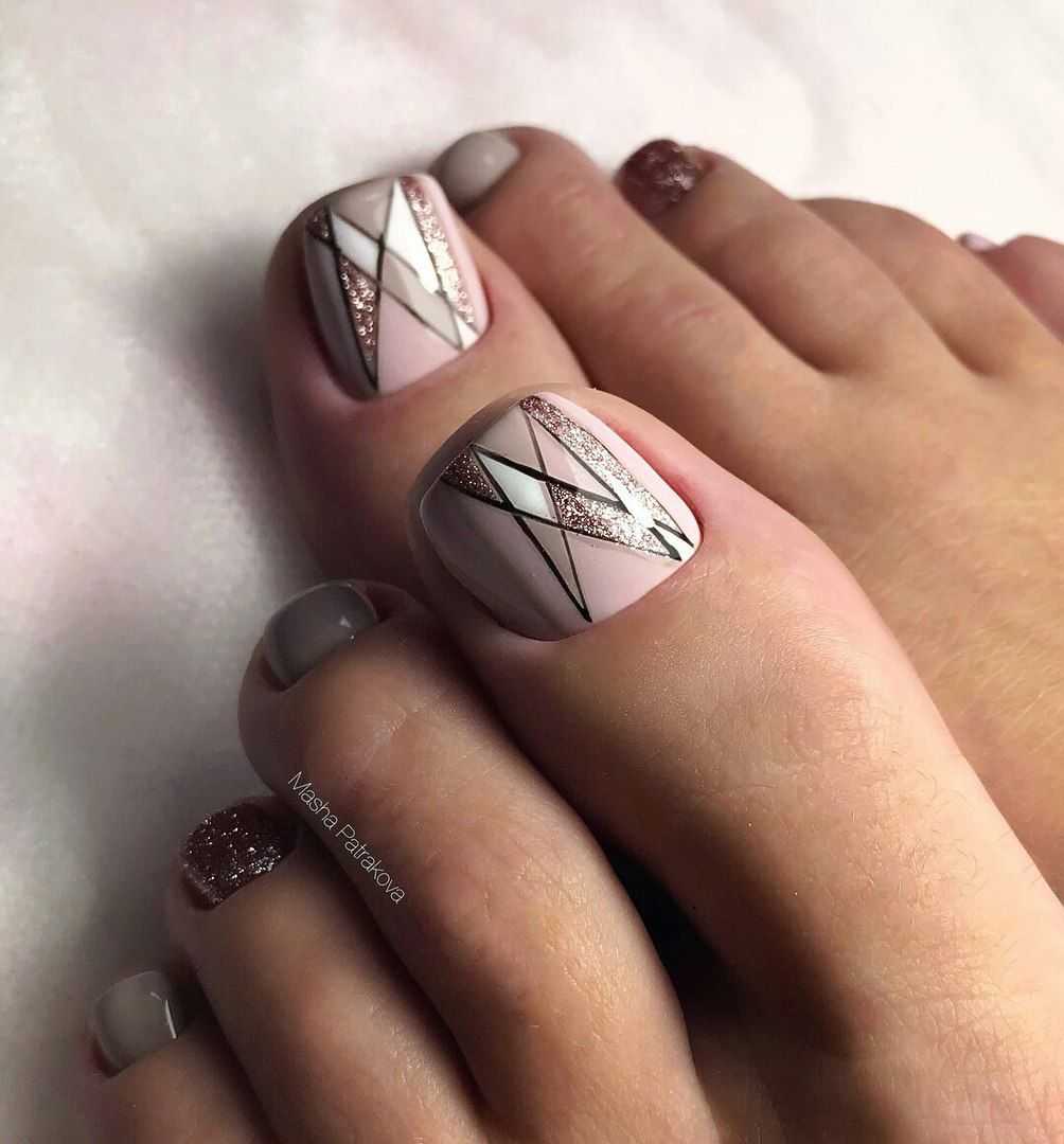#2 Педикюр с геометрическим дизайном: простое и стильное решение на каждый день