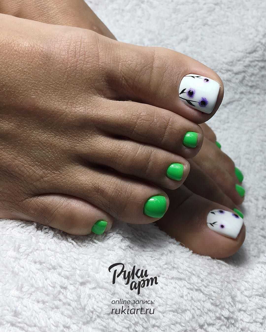 Часто маникюр и педикюр не одинаковые – используются схожие цвета, детали, но в общем дизайны получаются совершенно разные.