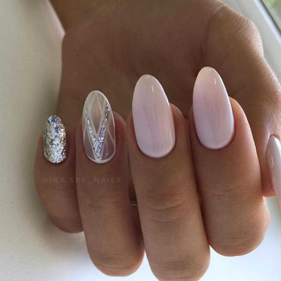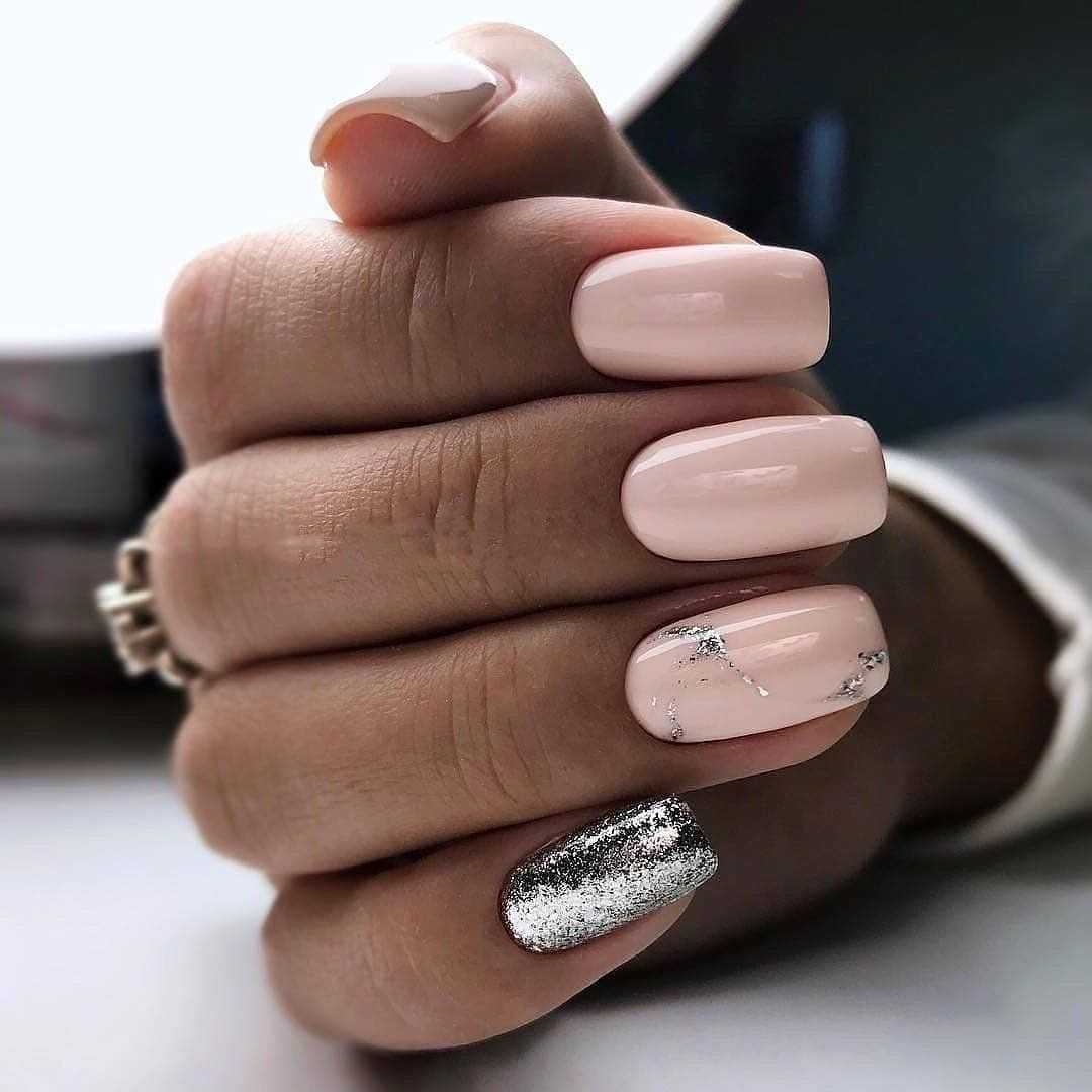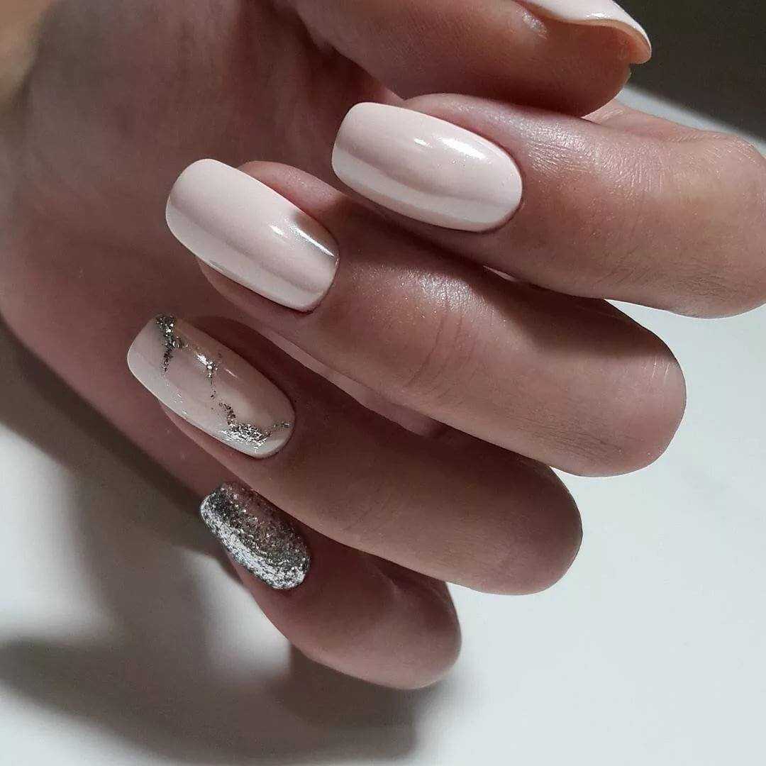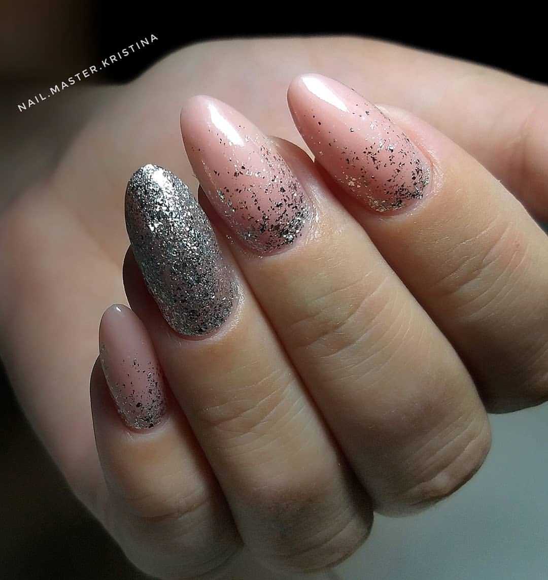 Что касается техник маникюра в этих оттенках, то стоит отдать предпочтение классике: френчу, лунному дизайну, градиенту, однотонному маникюру. Такой дизайн будет смотреться естественно и очень нежно. Дополняйте нежные оттенки серебряным или золотым глиттером, втиркой, пайетками разной формы и размера.