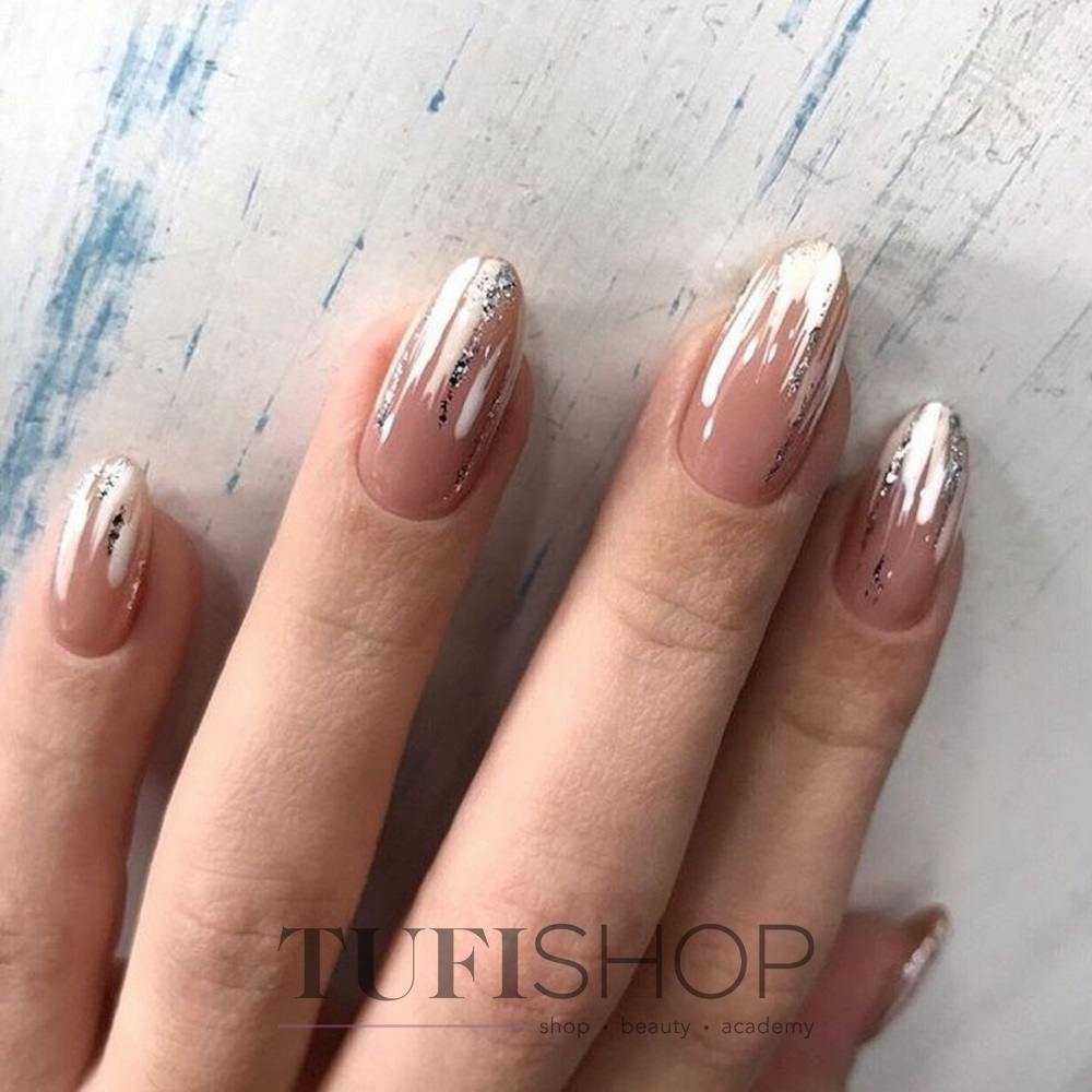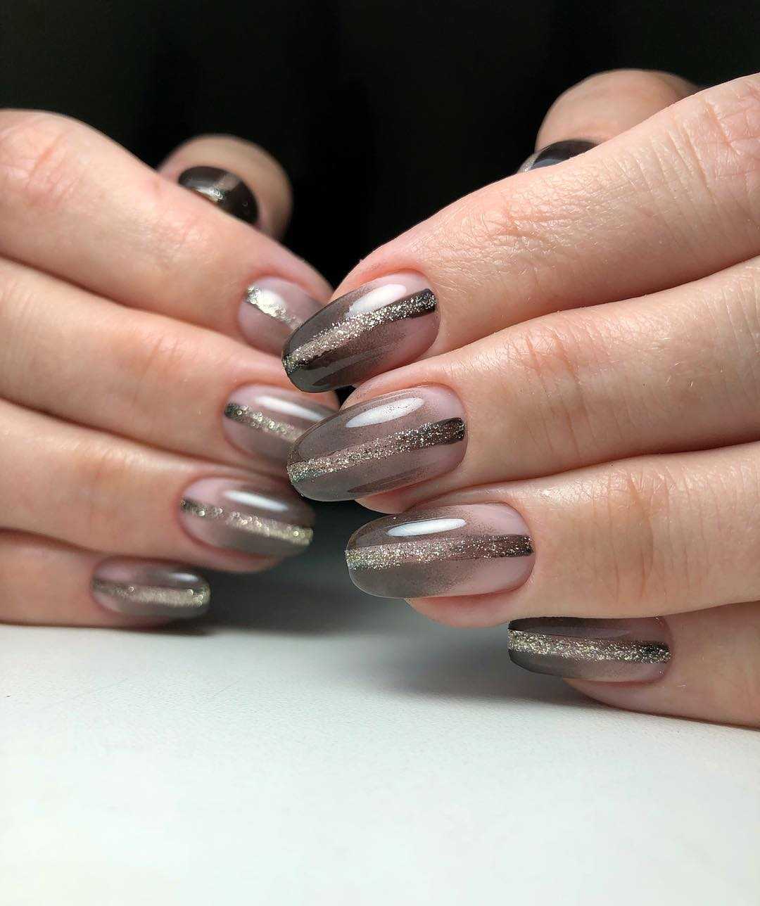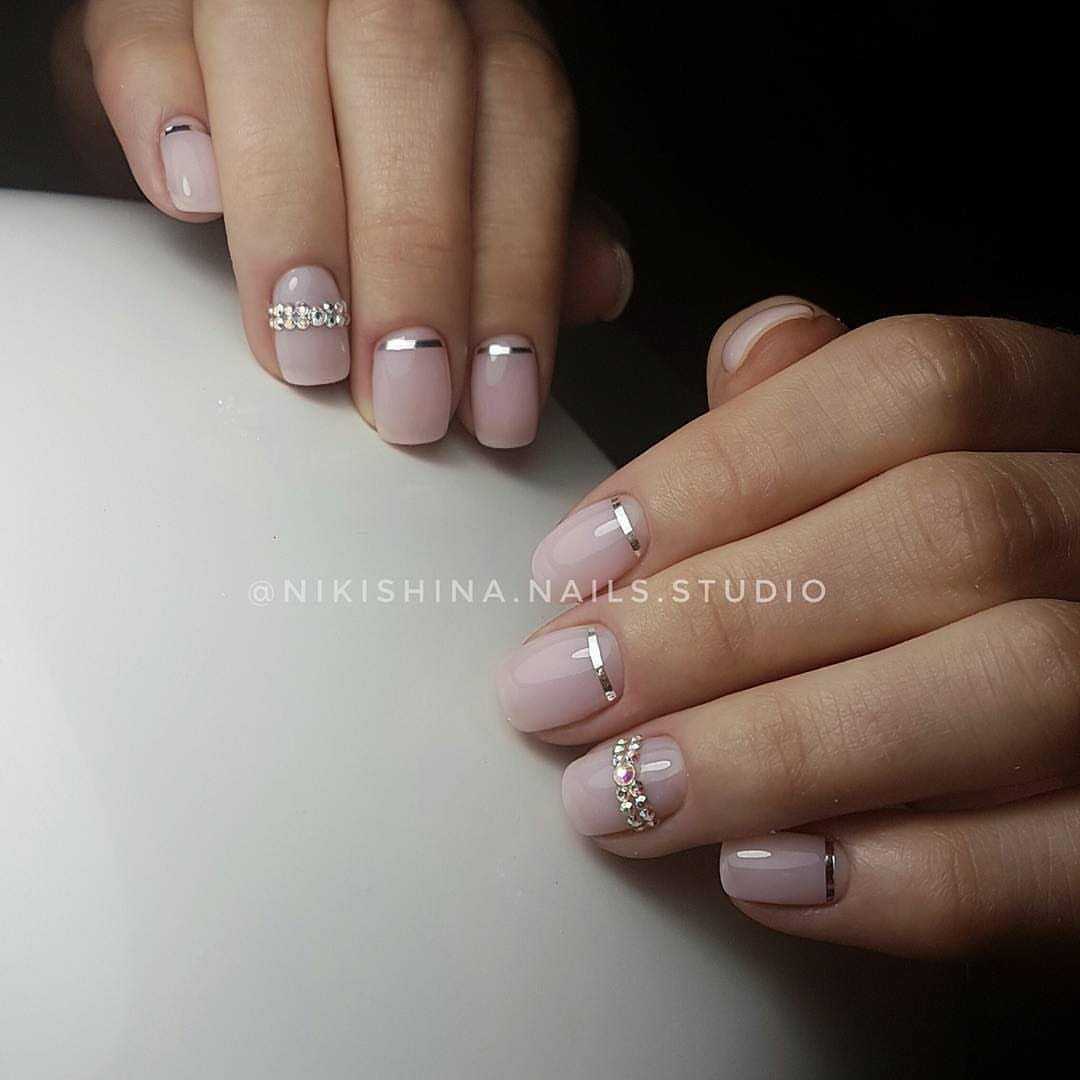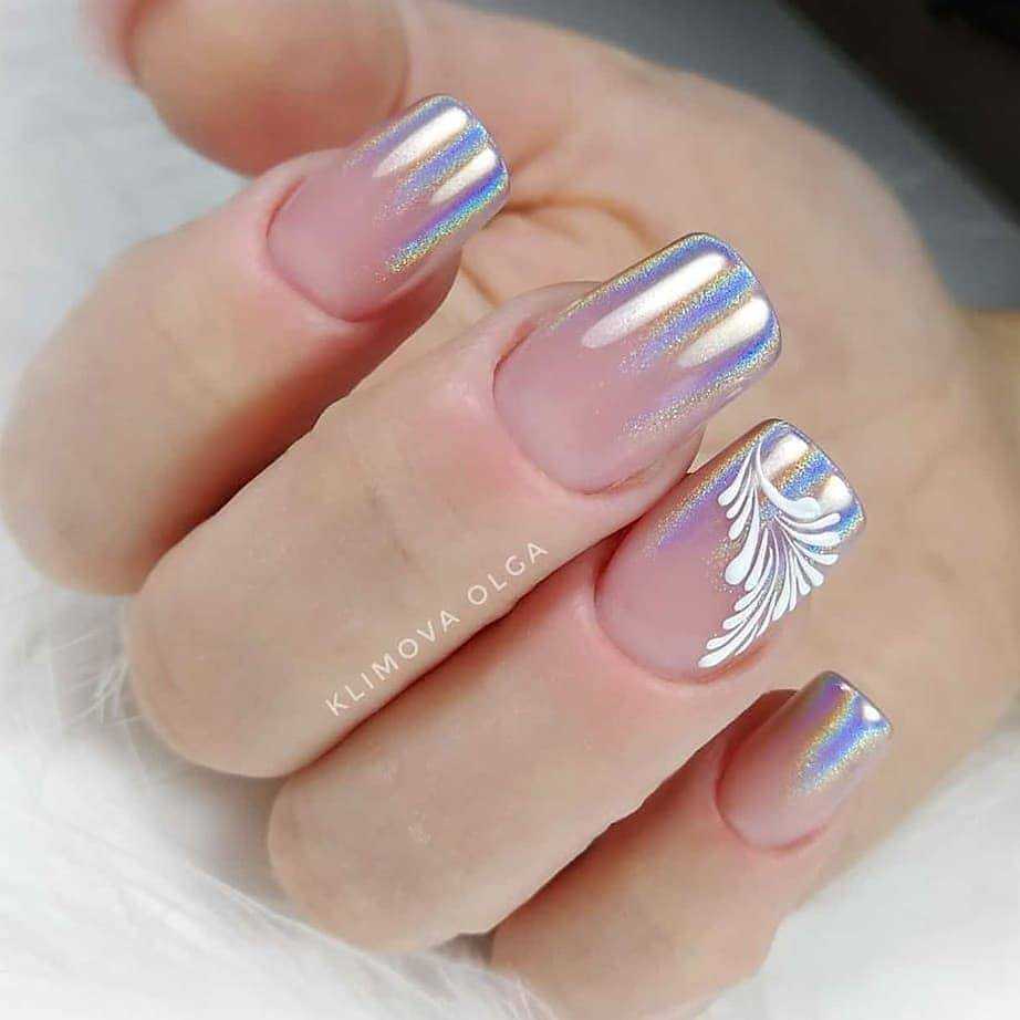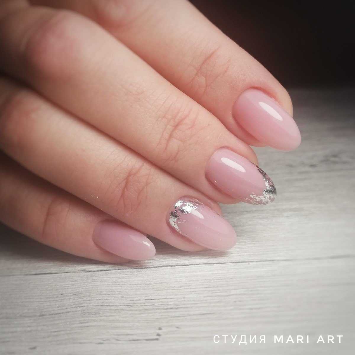 Что касается техник маникюра в этих оттенках, то стоит отдать предпочтение классике: френчу, лунному дизайну, градиенту, однотонному маникюру. Такой дизайн будет смотреться естественно и очень нежно. Дополняйте нежные оттенки серебряным или золотым глиттером, втиркой, пайетками разной формы и размера.