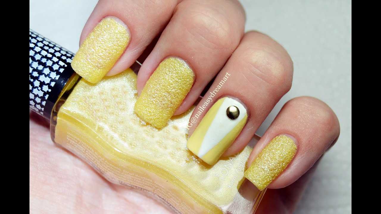 Длинные ногти всегда дают нам почти безграничную основу для творчества. На длинных ногтях беспроигрышно будет смотреться и яркий желтый, и приглушенный с блестящим дизайном, и просто золотисто-желтый, серебристый или жемчужный глиттер. Единственная опасность заключается в том, чтобы не перенасытить маникюр блестящими материалами. Поэтому, берем на вооружение понравившийся оттенок желтого цвета и выбираем, не теряя при этом чувство умеренности и вкуса, блестящий дизайн. Это может быть и втирка на желтую основу или желтая втирка на белую основу, и красивый узор, рисунок из золотисто-желтого глиттера, а также любимое многими сочетание желтого и разных других цветов, оттенков на разных ногтях.