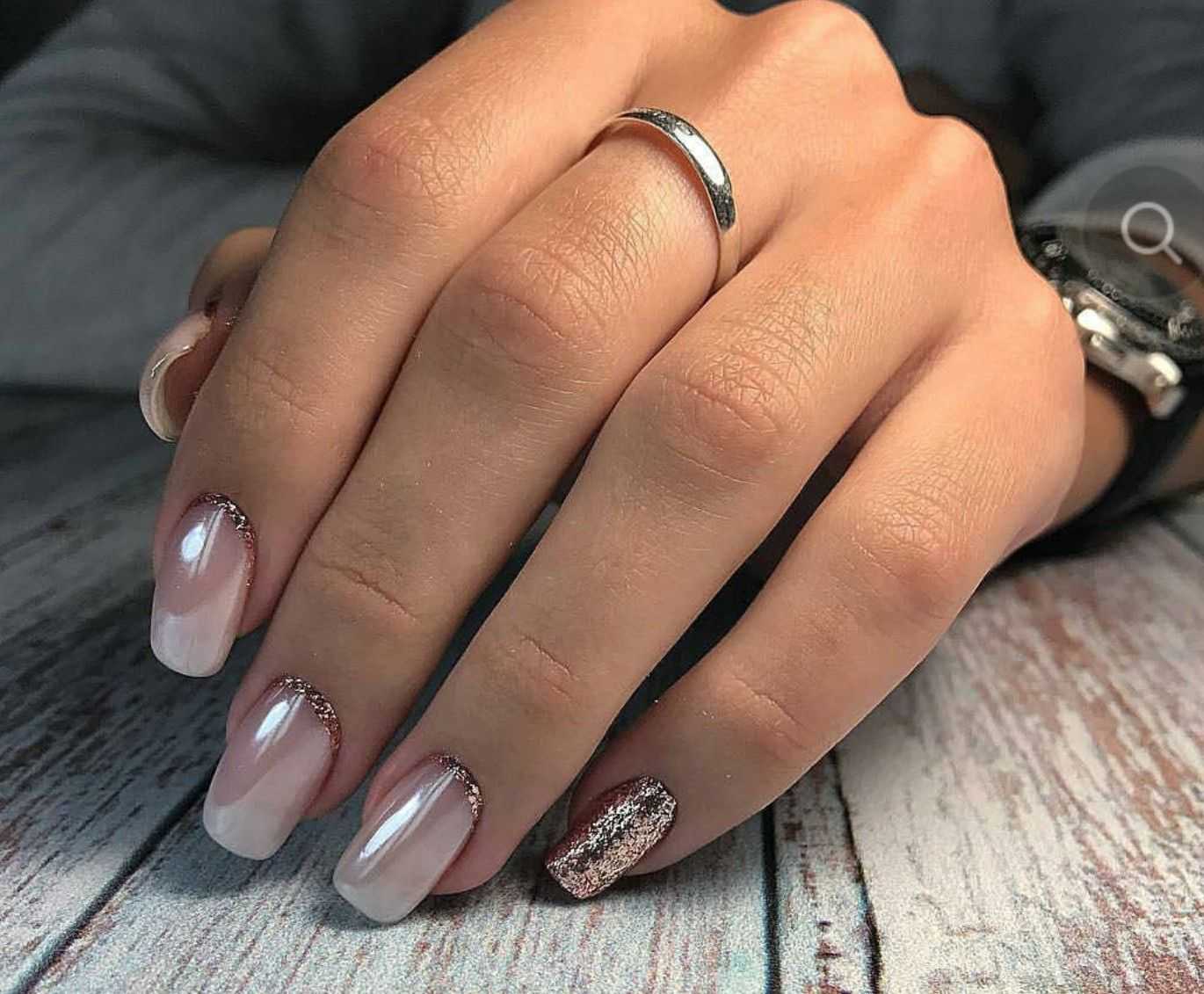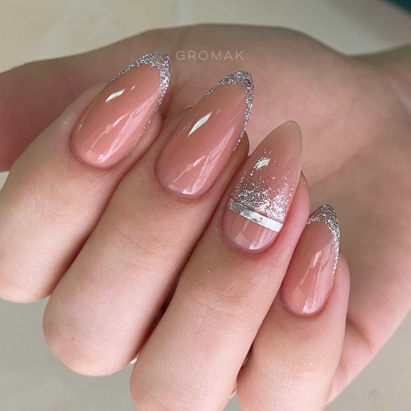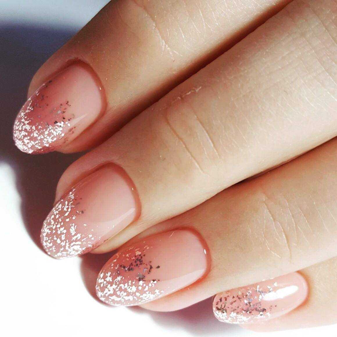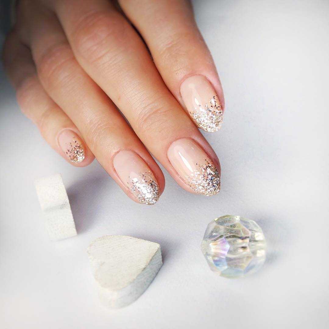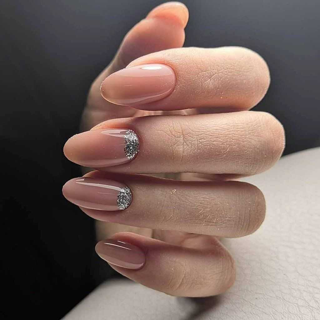 #4 Нюдовый маникюр с блестками на кончиках ногтей