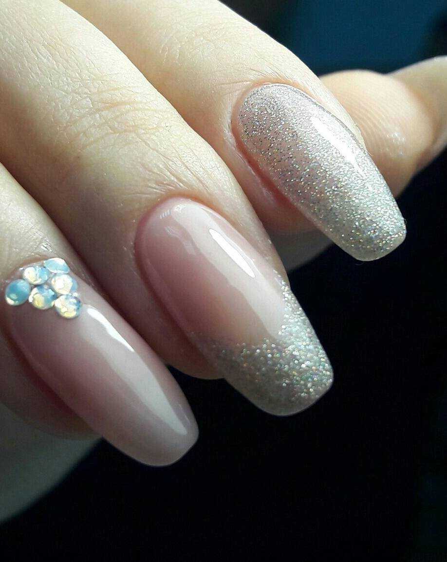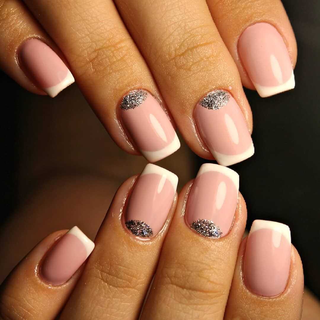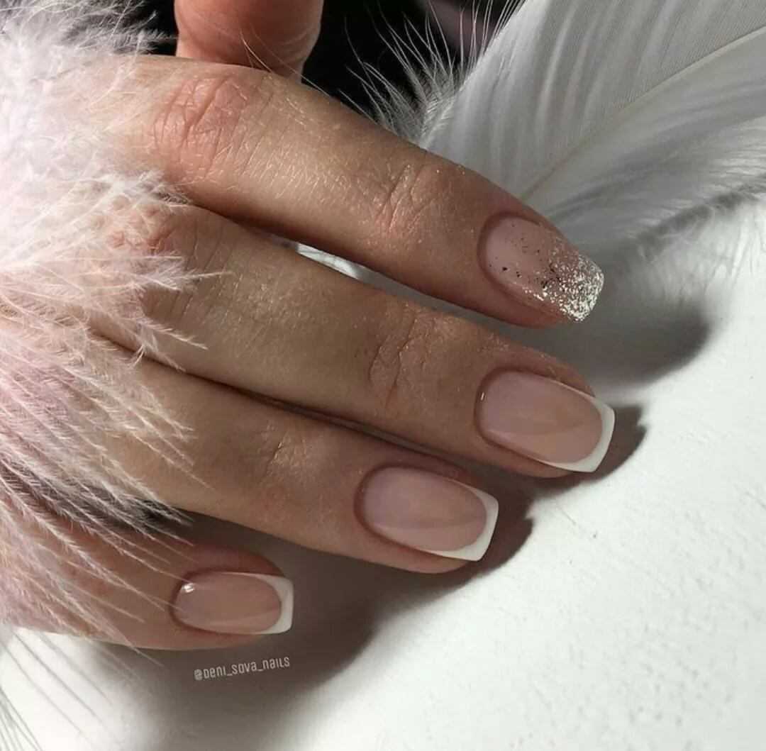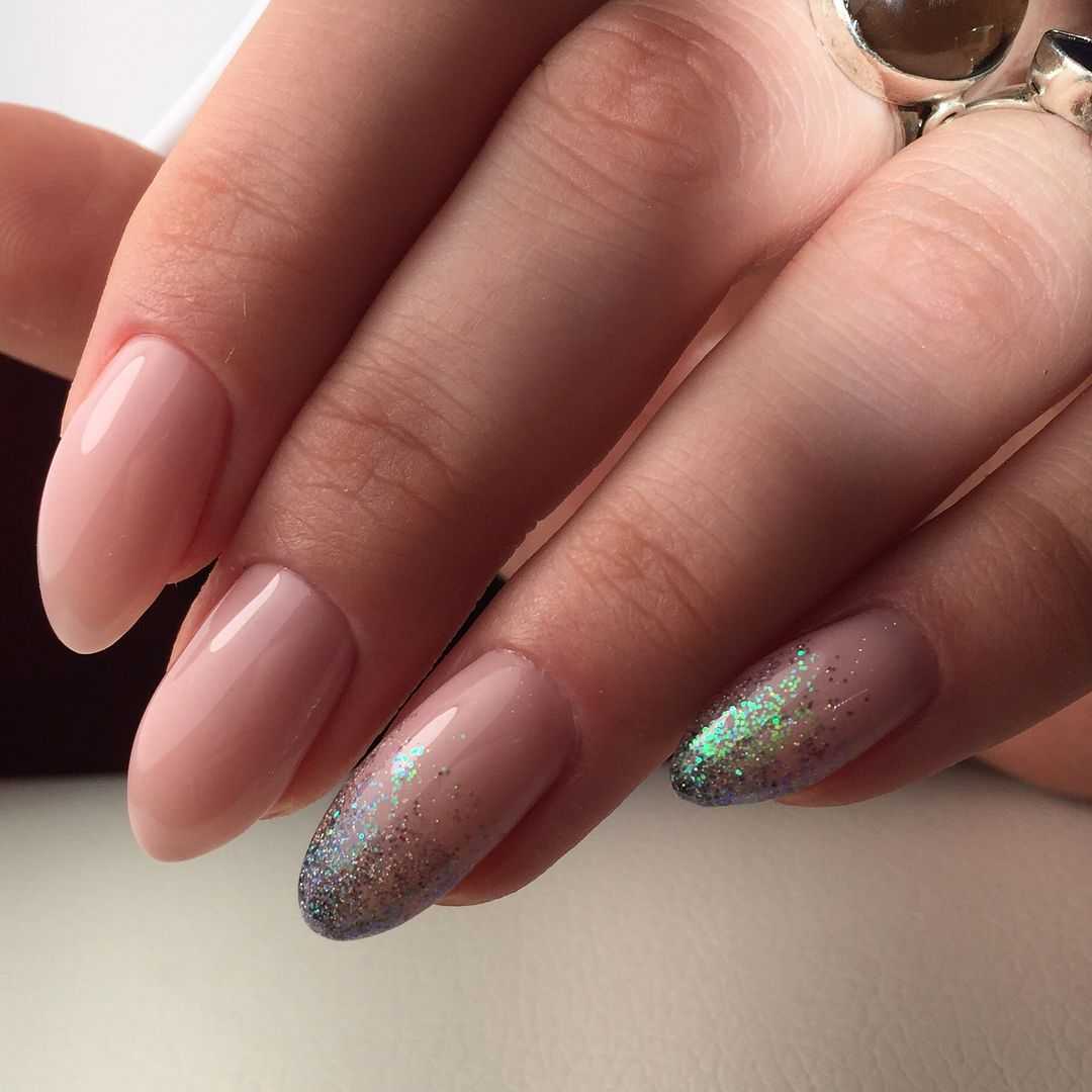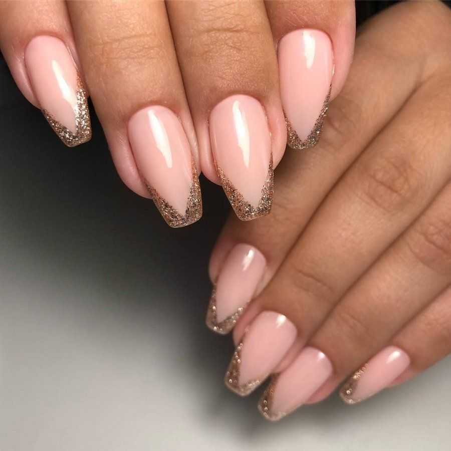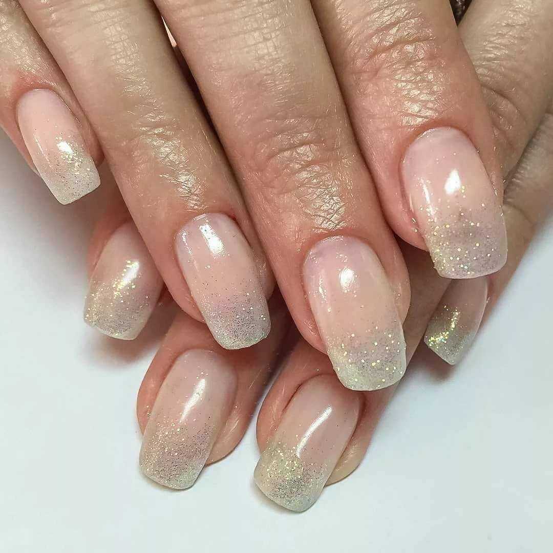 #4 Нюдовый маникюр с блестками на кончиках ногтей