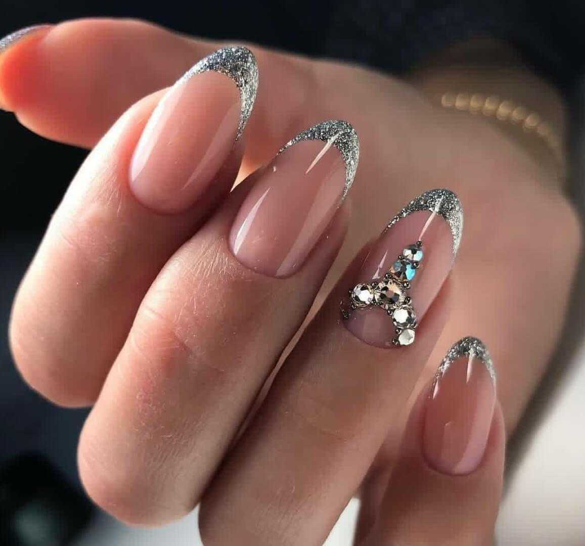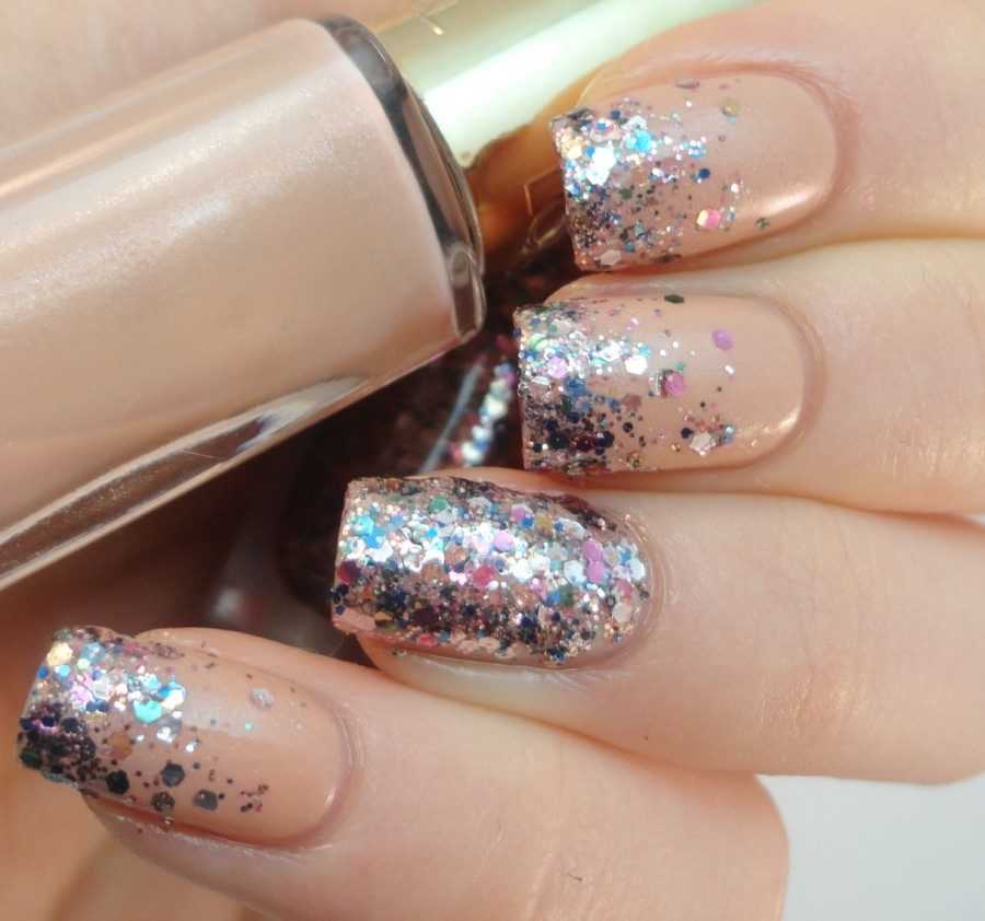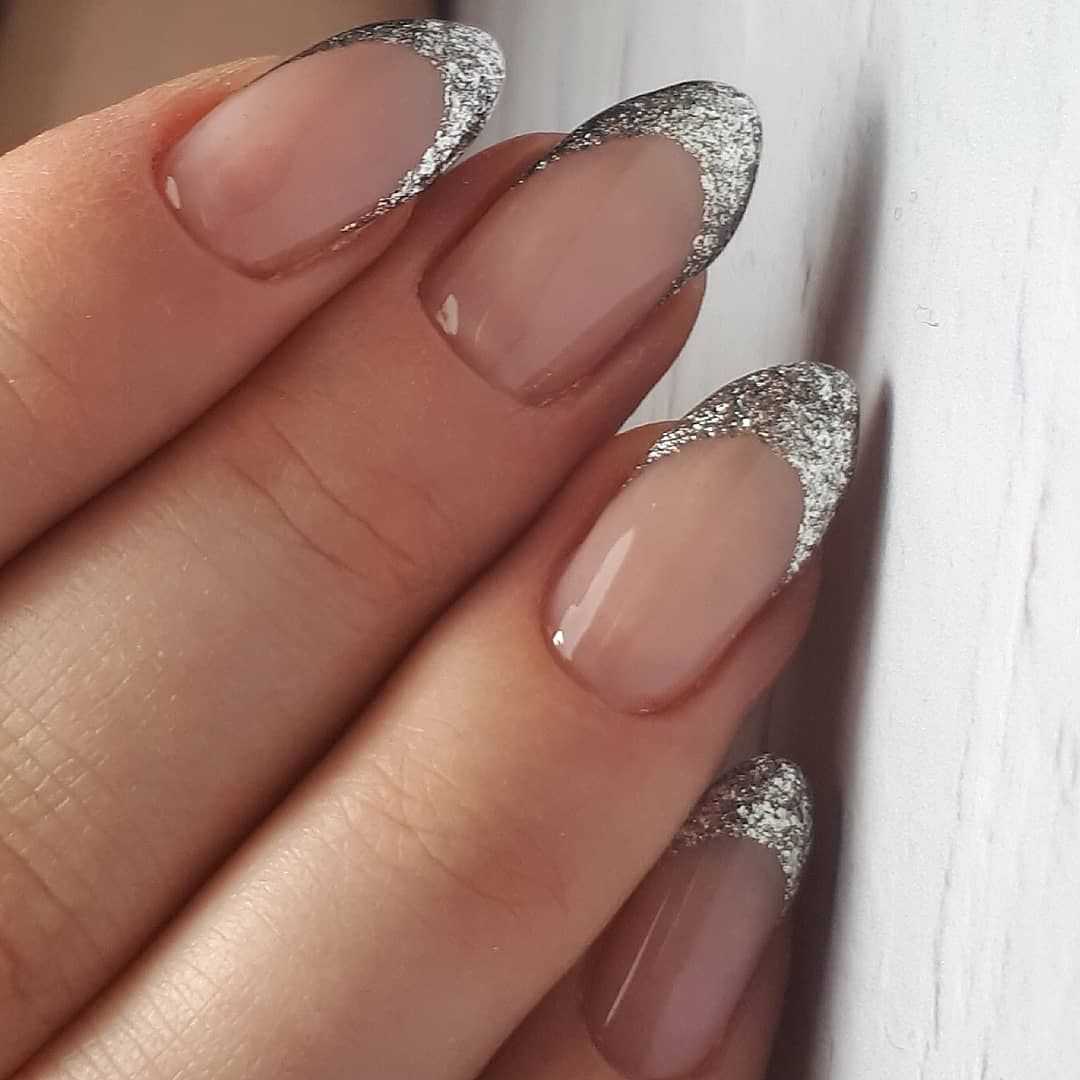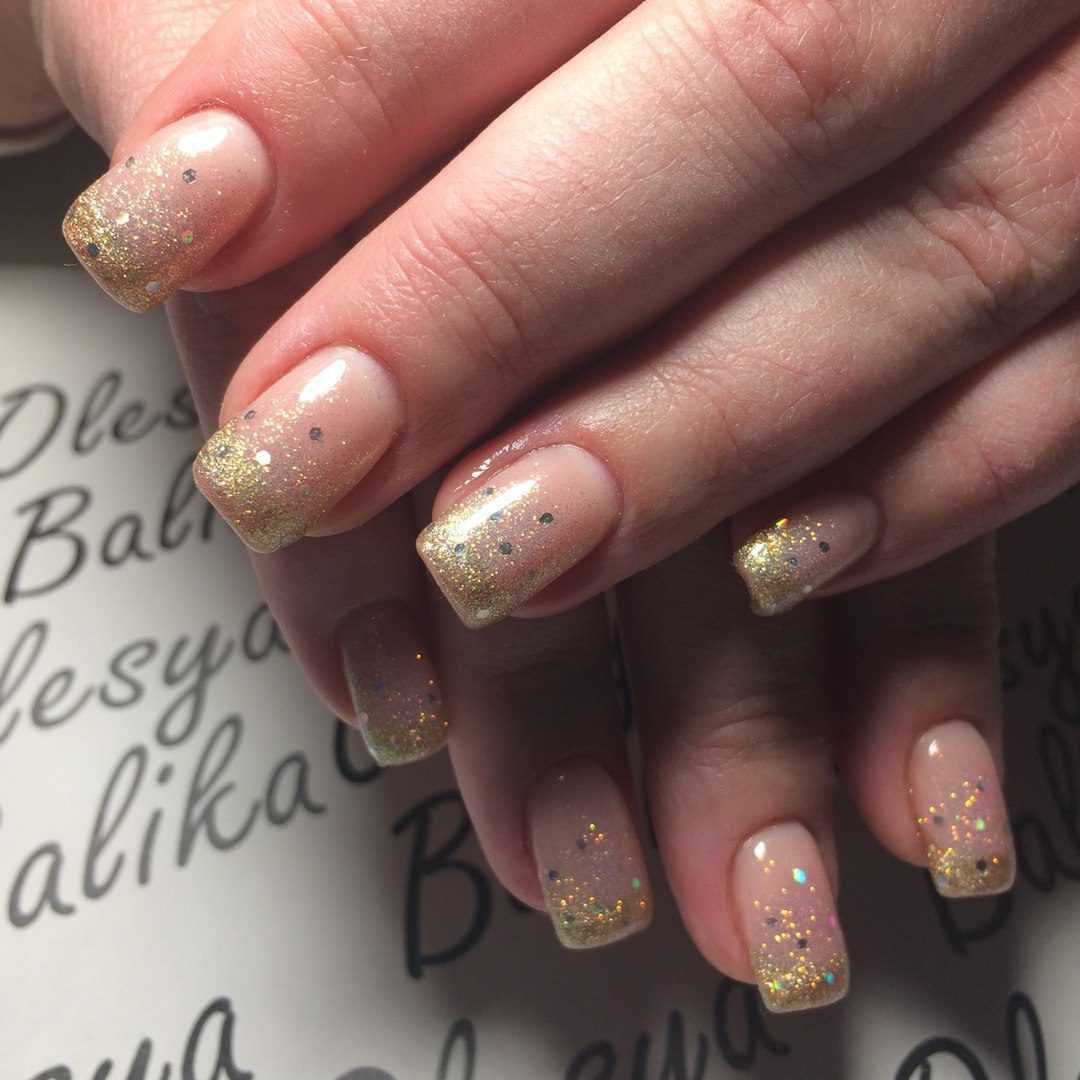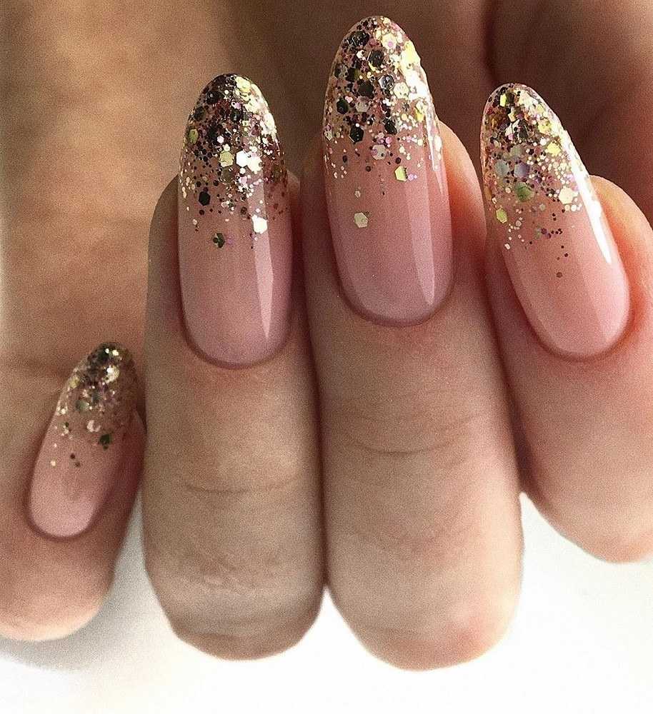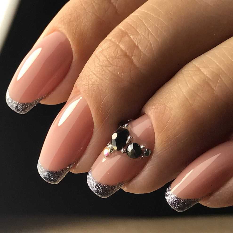 #4 Нюдовый маникюр с блестками на кончиках ногтей