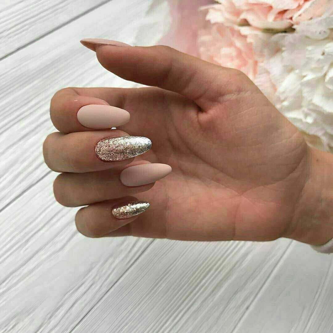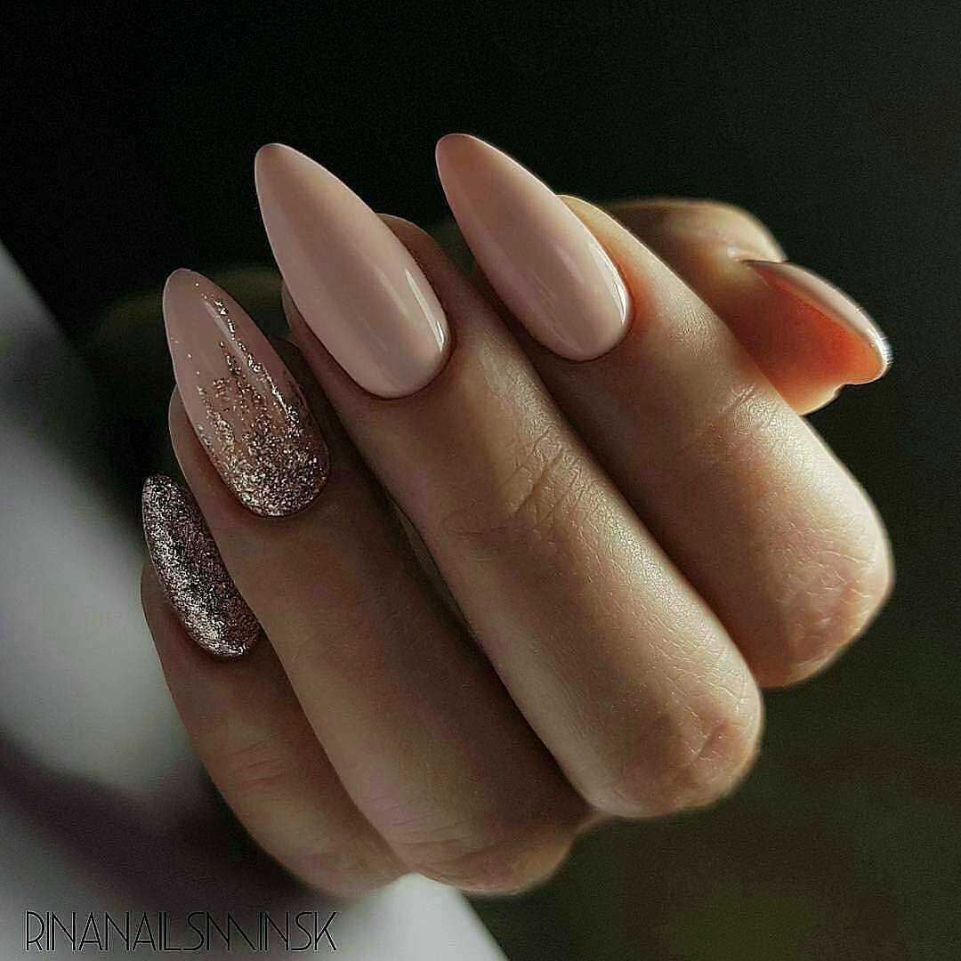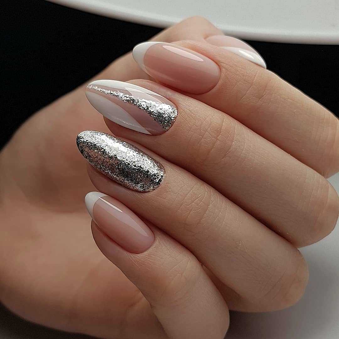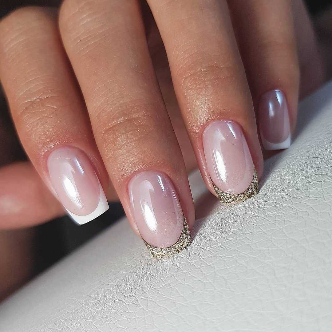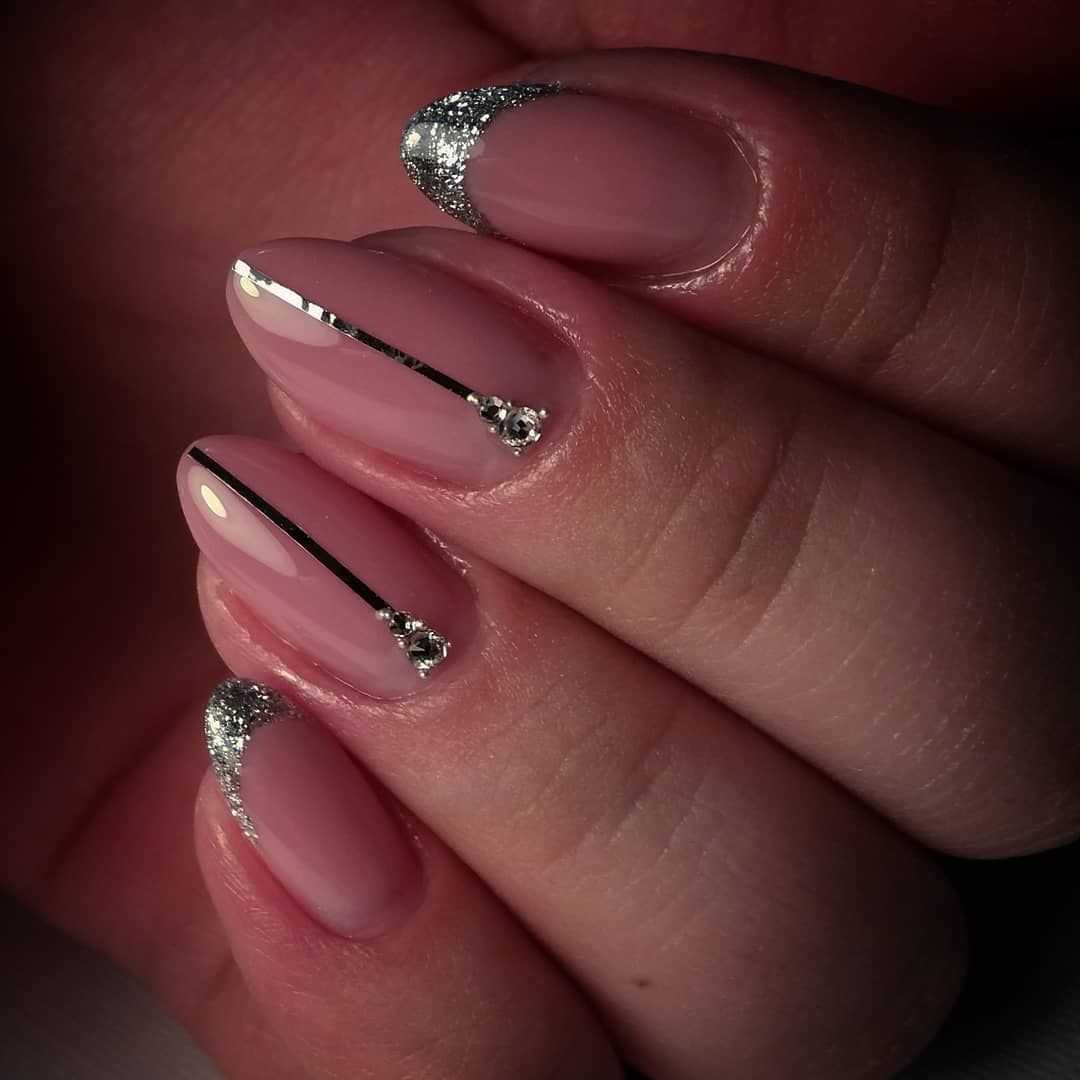 #4 Нюдовый маникюр с блестками на кончиках ногтей