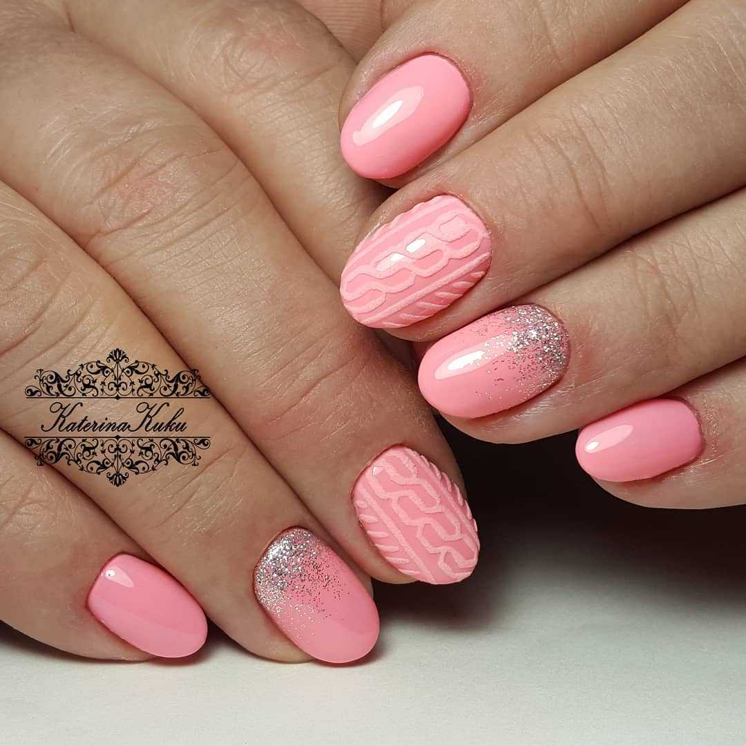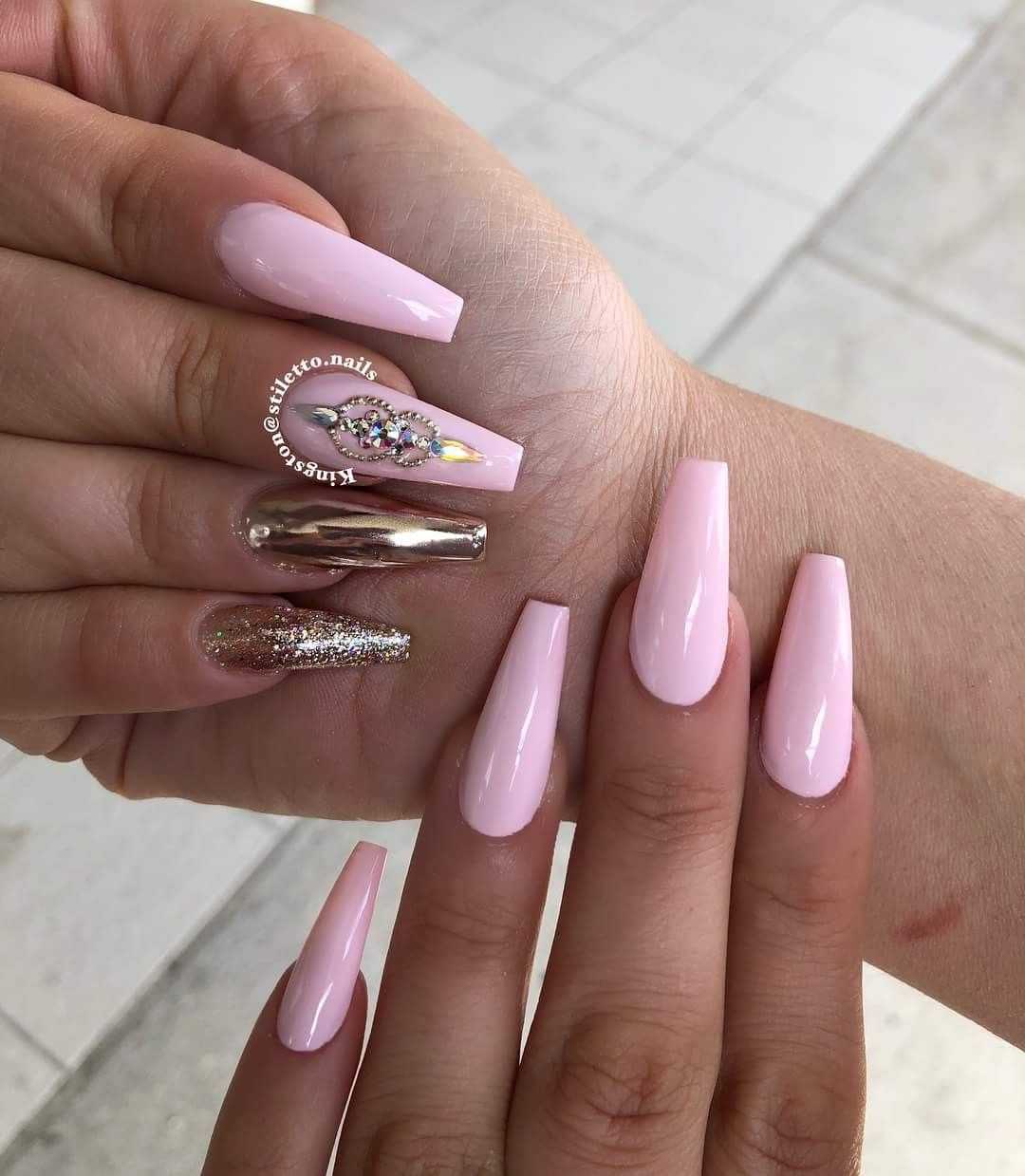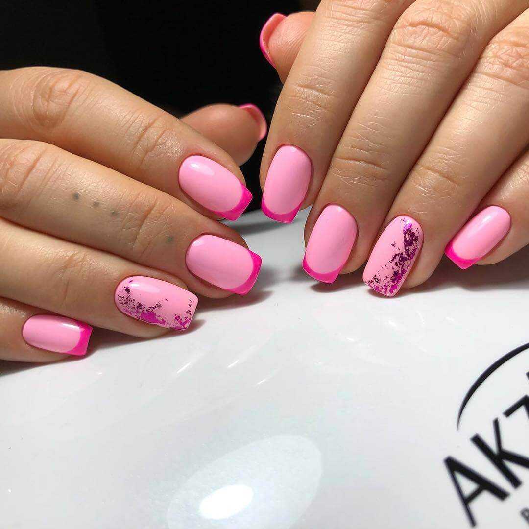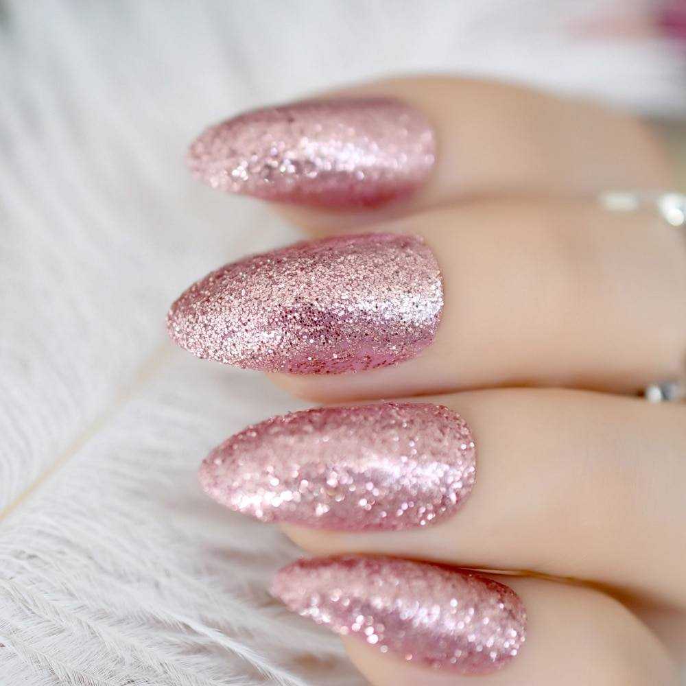 Розовая палитра богата разными оттенками, которые чудесно сочетаются с блёстками и шикарно смотрятся как на коротких, так и на длинных ноготках. Для создания модного розового маникюра изначально следует определиться с выбором основного покрытия, и, по мнению нейл-специалистов, светлокожим барышням лучше подходят светлые оттенки, а красоту смуглой кожи и тёмных волос следует подчеркнуть более яркими лаками. Для сохранения гармонии во всём образе, не стоит дублировать насыщенный розовый на ноготках в деталях одежды или аксессуарах.