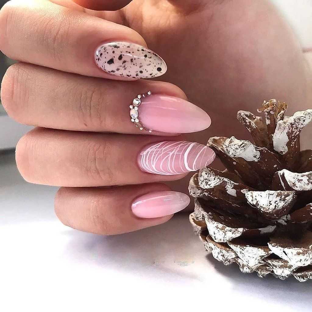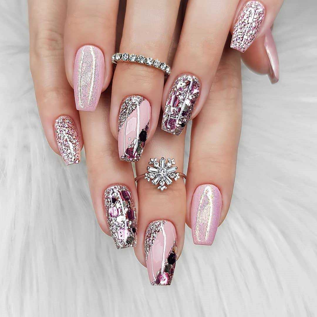 Оформление стразами также имеет множество вариаций. То есть декор может быть разных размеров и оттенков, что дает невероятное пространство для творческих экспериментов. С их помощью можно выложить целые рисунки. Это могут быть снежинки, цветы, фламинго и многое другое.