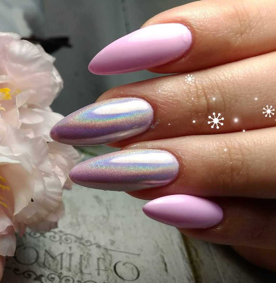 В мире нейл-арт индустрии существует большое количество разновидностей нежного, но в тоже время блестящего маникюра. Мерцающий декор имеет невероятный спектр разнообразия, что позволит подобрать дизайн для всех случаев жизни. Нежный нейл-арт с блестками прекрасно впишется в праздничные образы, наполнит изящностью и очарованьем повседневные наряды. Переливающийся акцент способен сделать маникюр неотразимым, а сам образ ярче и веселее. В качестве блестящего дополнения можно смело использовать фольгу, глиттер, втирку, бульонки, стразы, хлопья Юки или хрустальную крошку. О самых лучших идеях нежного блестящего маникюра мы расскажем более детально.