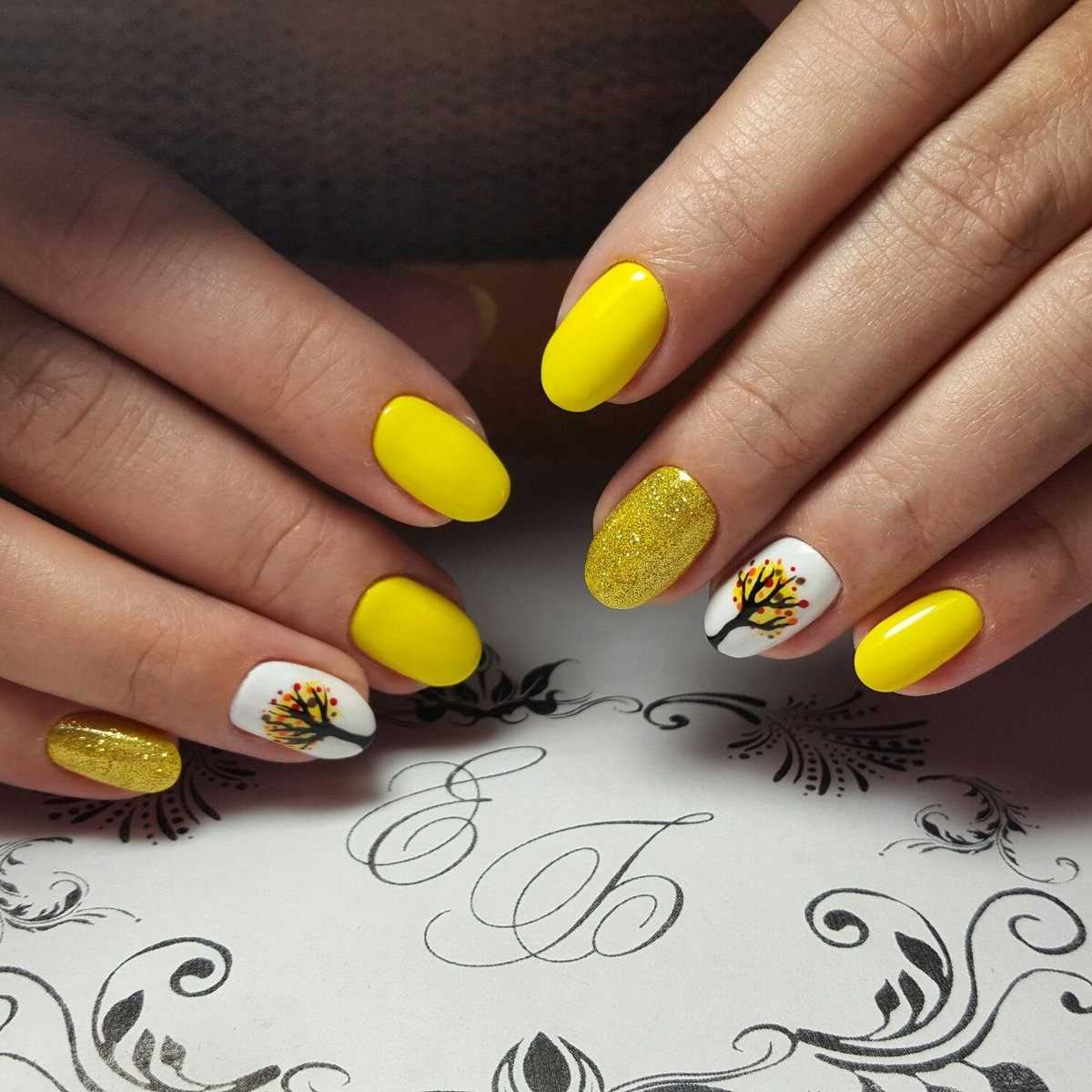 Отдельная тема – желтый маникюр с геометрическим дизайном: шахматный желто-белый или желто-черный рисунок, круги или горошки желтого цвета либо на желтом цвете, прямоугольники, очерченные тонкой линией и заполненные желтыми блестками, строгие четко очерченные линии вдоль или поперек ногтевой пластины. И это далеко не полный перечень вариантов дизайна. Ваше настроение, вдохновение и фантазия всегда могут создать новый дизайн или даже тренд.