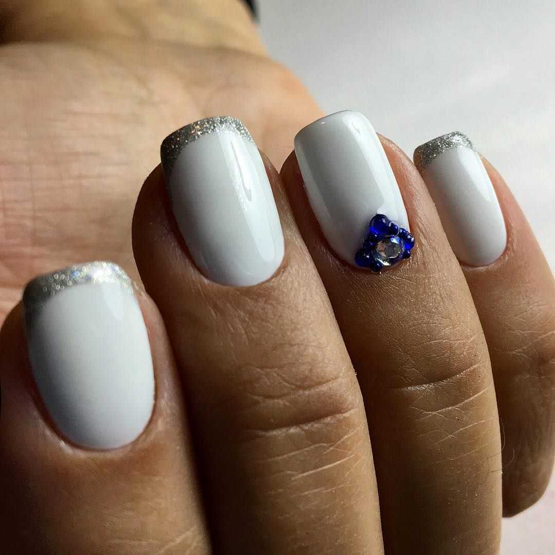Ноготки белого цвета считаются одним из показателей нежности и утончённости. Такое оформление всегда смотрится элегантно и очень часто используется для дополнения образа в самые важные моменты жизни, например, свадьба или юбилей. Особенно шикарно и по-настоящему празднично смотрятся в этом случае варианты маникюра с блёстками, которые могут украшать любую часть ноготков. Это шикарные однотонные вариации с аккуратными рисунками и сверкающими акцентами, выделение блестящими частицами безымянного ноготка, чудесные примеры сочетание белого лака с другими цветами, изысканный френч с двойной или ажурной улыбкой, а также лунный дизайн и фрагменты «негативного пространства» с блестящим мерцанием.