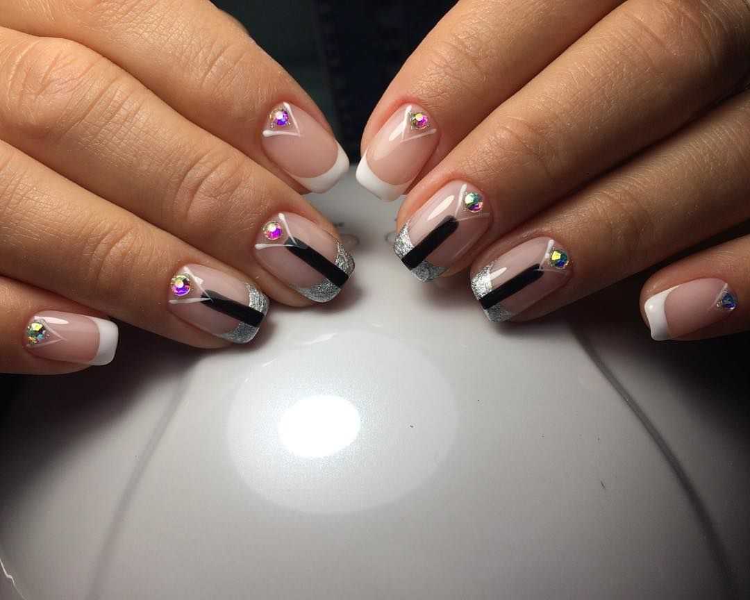 Французский маникюр с блестками – это лучшее решение для тех модниц, которые не любят слишком сложное оформление ногтей. Безусловно, данный вариант по праву можно назвать наиболее универсальным. Поскольку он точно будет хорошо сочетаться с самыми разными луками.