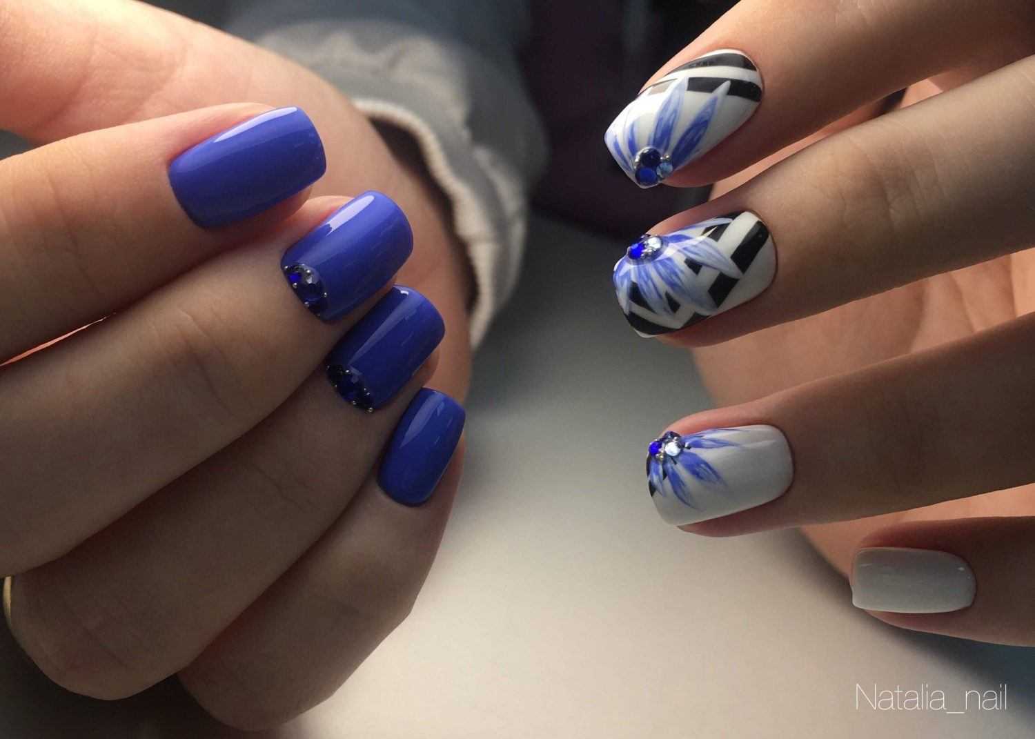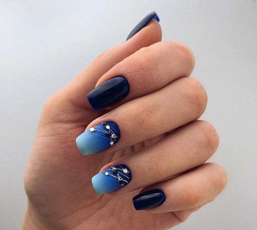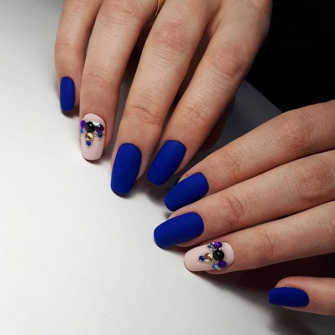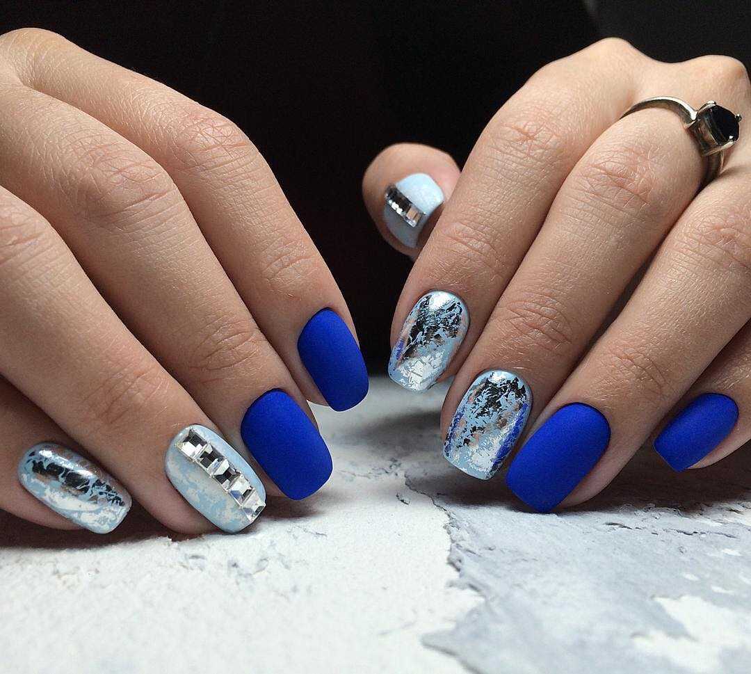 Маникюр синего цвета всегда смотрится стильно, независимо от наличия дополнительных деталей или рисунков. Это некая классика, которая актуальна в любое время года. Воплощайте интересные идеи, украшайте ноготки и маникюр будет выглядеть современно и модно.