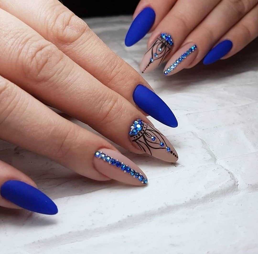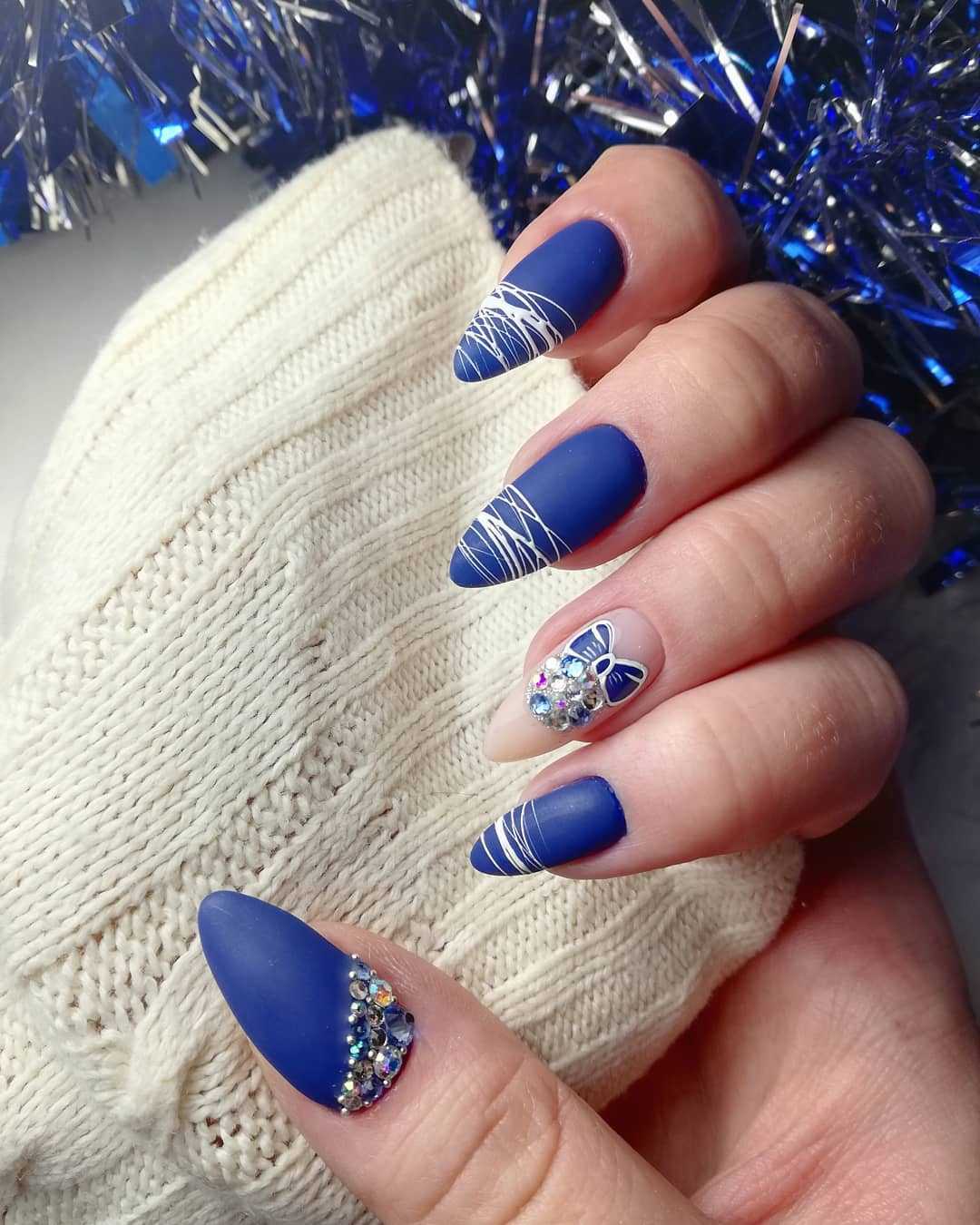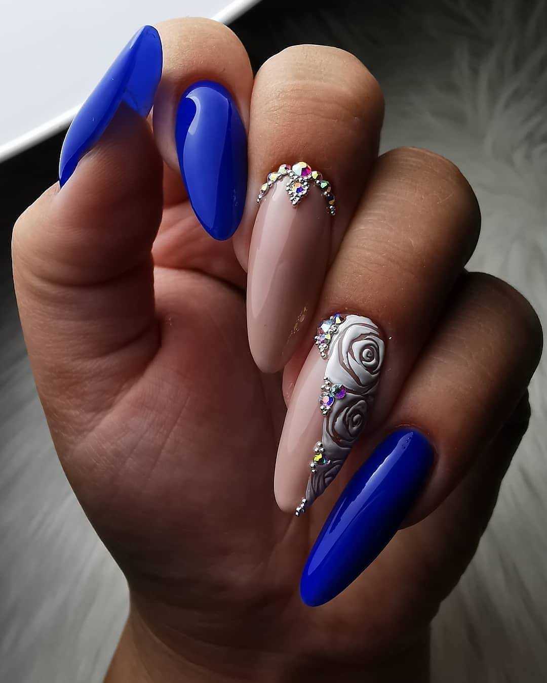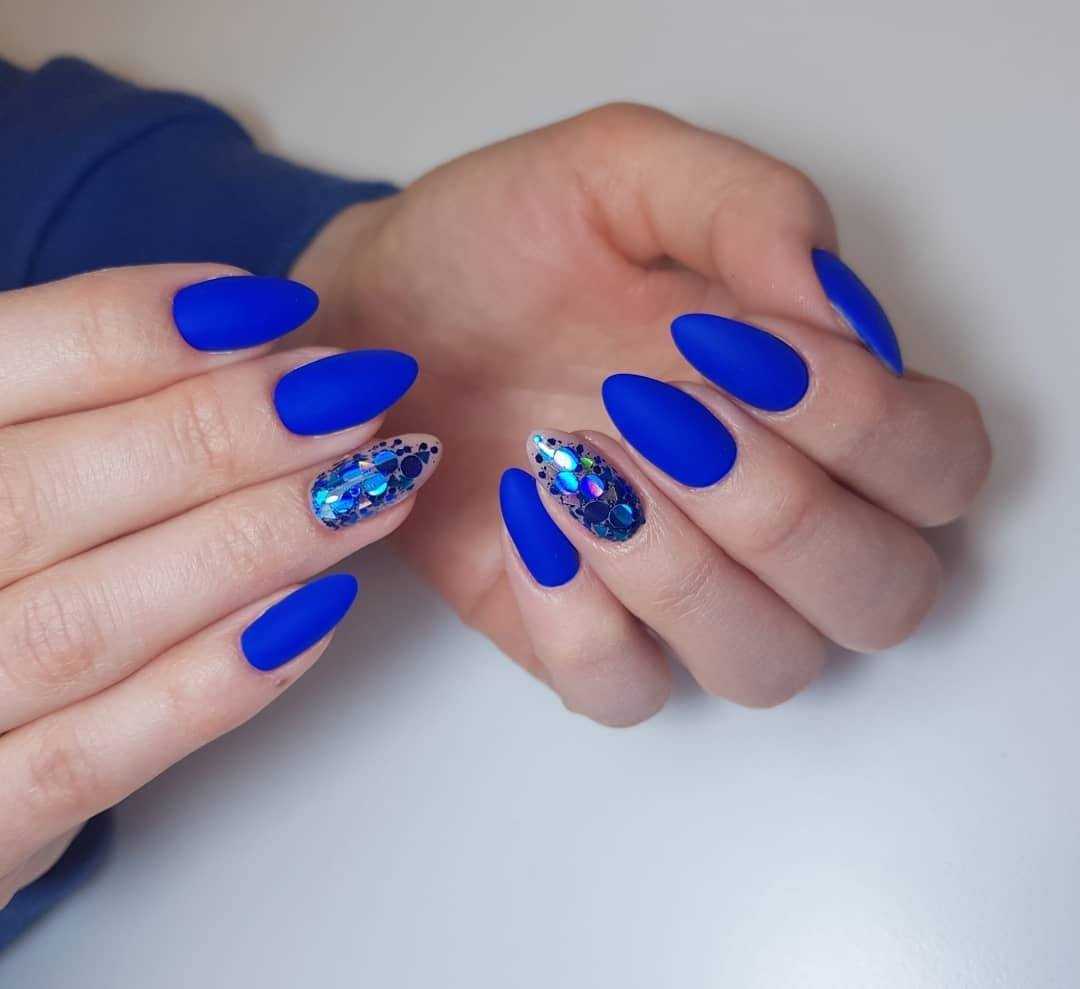 Маникюр синего цвета всегда смотрится стильно, независимо от наличия дополнительных деталей или рисунков. Это некая классика, которая актуальна в любое время года. Воплощайте интересные идеи, украшайте ноготки и маникюр будет выглядеть современно и модно.