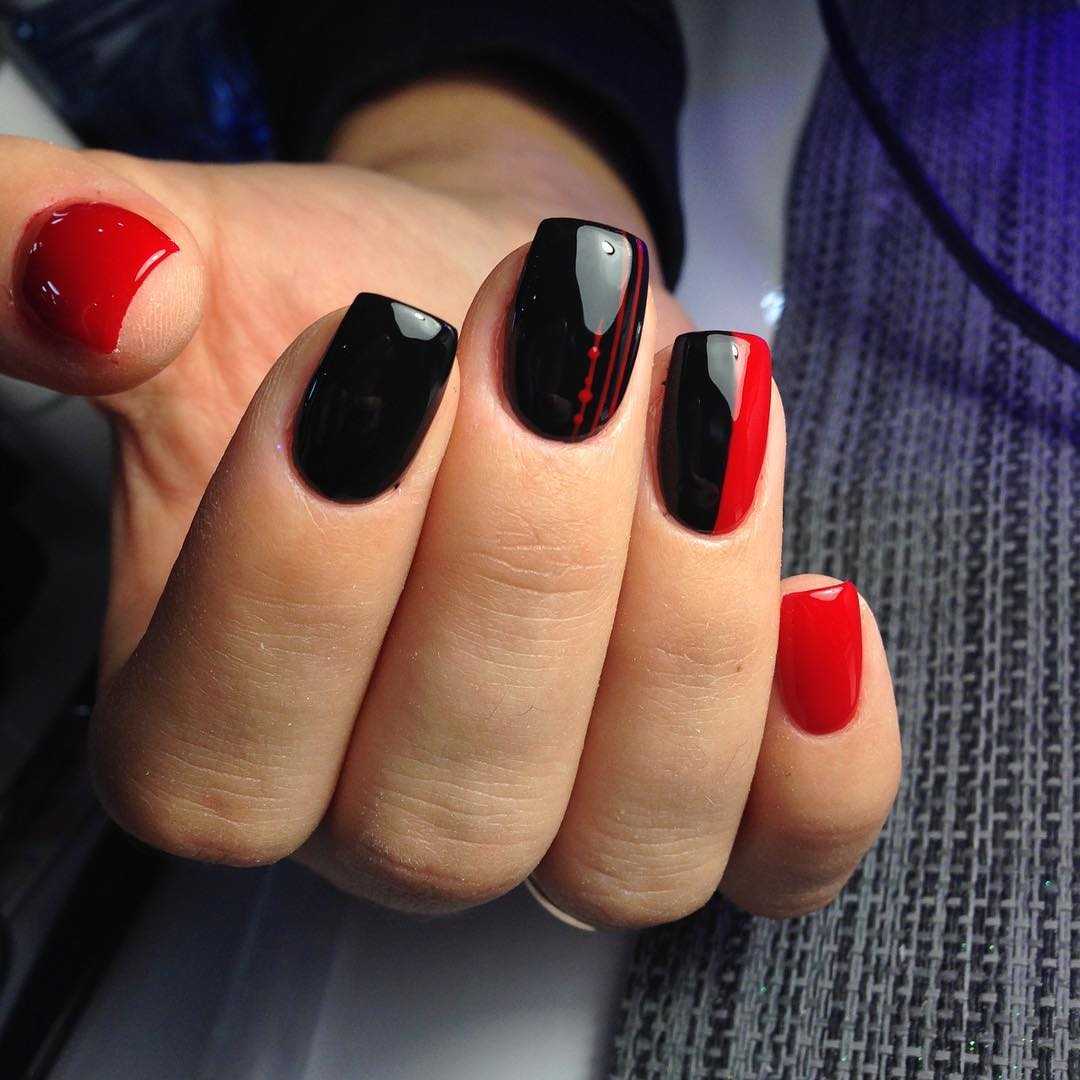 Среди классических решений внимания достойно и красно-черное сочетание. Оно смотрится особенно выигрышно, дерзко. Поэтому его используют в оформлении ногтей достаточно часто. Только представьте, насколько роскошно будет смотреться в таком сочетании френч или геометрический дизайн. Что касается мраморного рисунка, то в таком случае красный цвет выполняет роль основы, а тонкие линии должны быть черными. Наносить их лучше всего специальной кистью. Впрочем в домашних условиях для этого нередко используют простую зубочистку. Конечно же, все это требует практики и только со временем получится создавать удивительной красоты дизайн даже в домашних условиях.