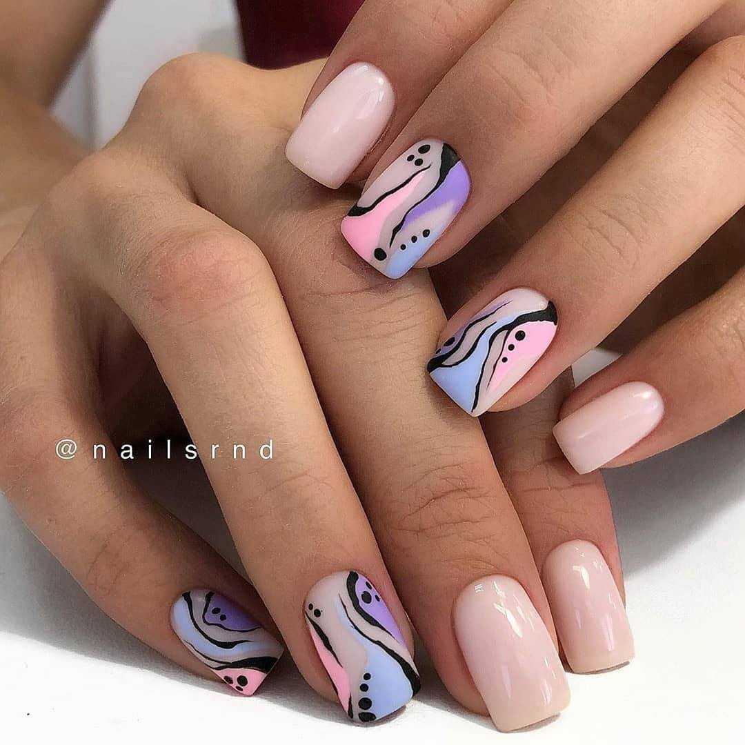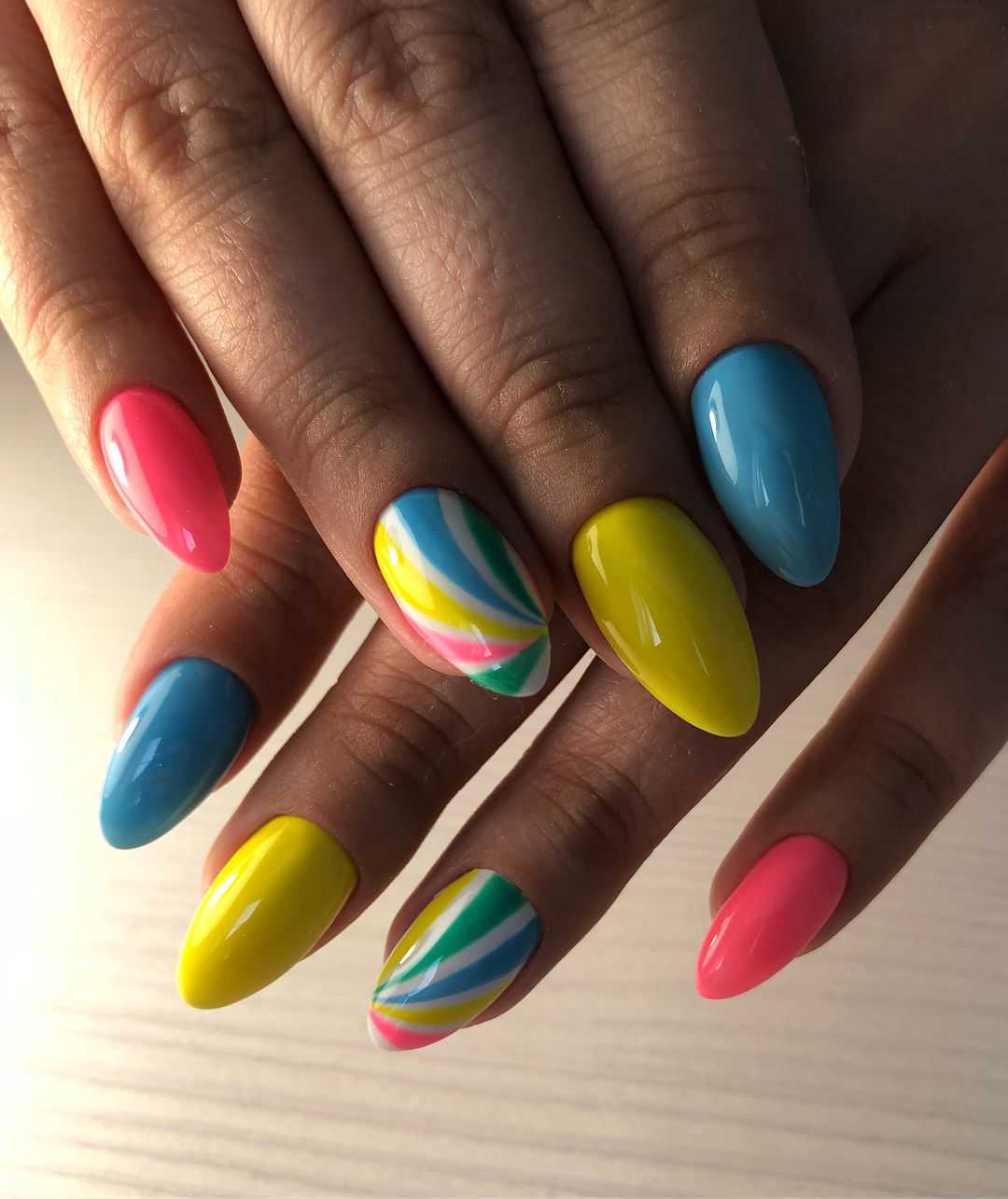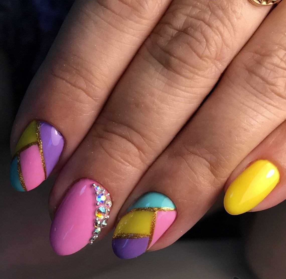 Если вам не нравится придерживаться столь строгих правил при выборе оттенков, можно просто накрасить ногти разными цветами лаков. Это решение не имеет отношения ни к одной из схем, зато очень популярно в 2020 году.