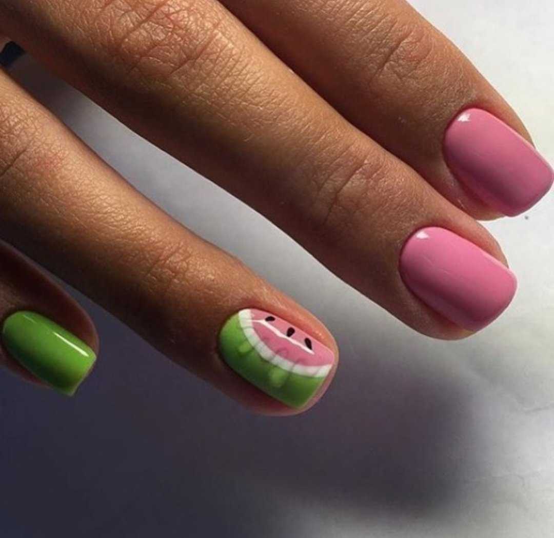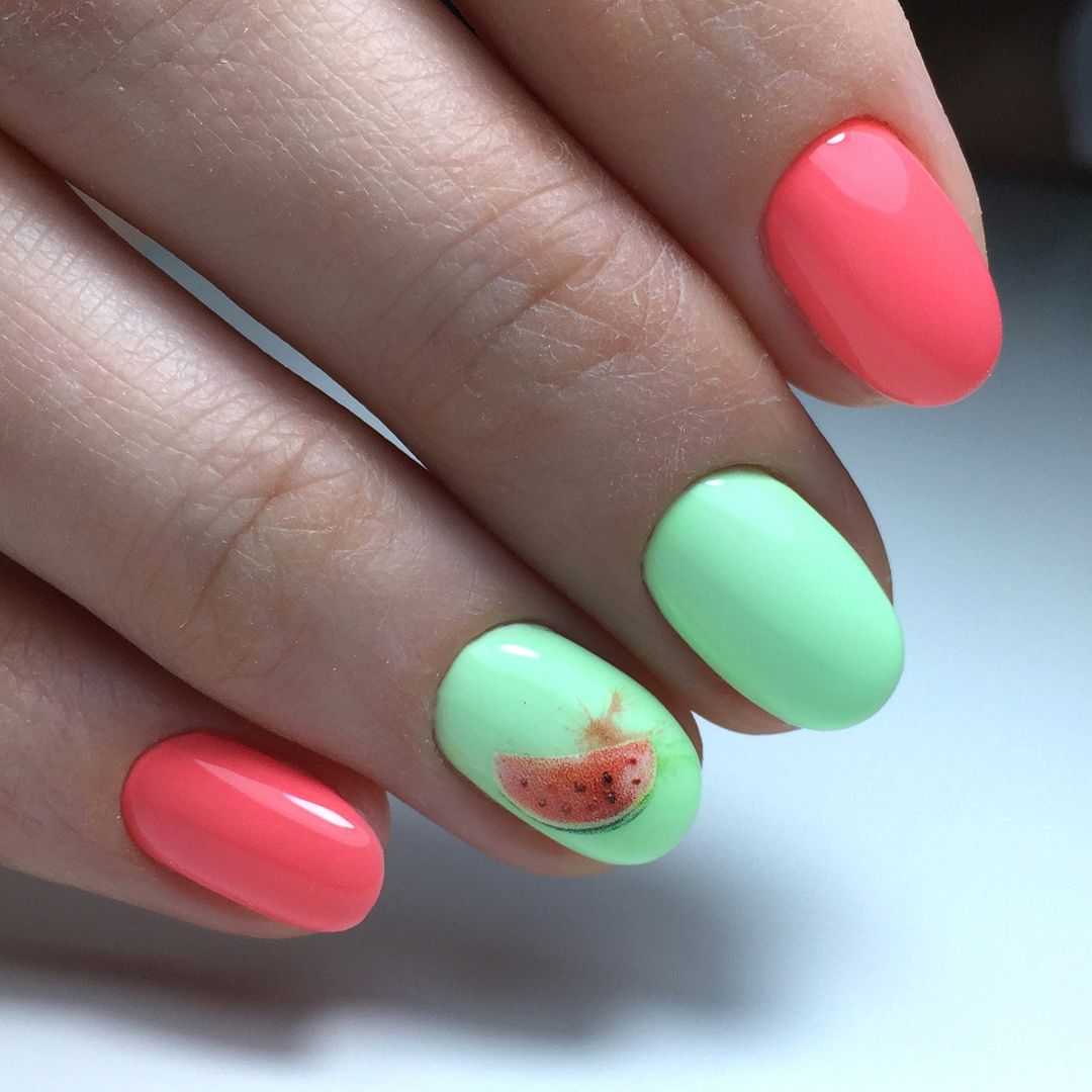 Два цвета, красный и зеленый, вызывают не только новогодние ассоциации, но и яркие летние мотивы. Яркость цветов, буйство зелени — это все в двух сочных или матовых цветах. С помощью красного и зеленого цвета на ногтях у вас расцветут красные цветы с зеленой листвой, появятся дольки арбуза и сочная клубника, или же перед Новым годом заиграет елка с красивыми игрушками и другими атрибутами праздника.