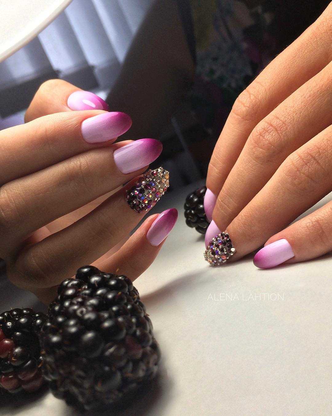 - сочетая краски, не забывай, что это не обязательно фоновое покрытие ногтей. Выбранные оттенки находят отражение в рисунках, узорах и градиенте;