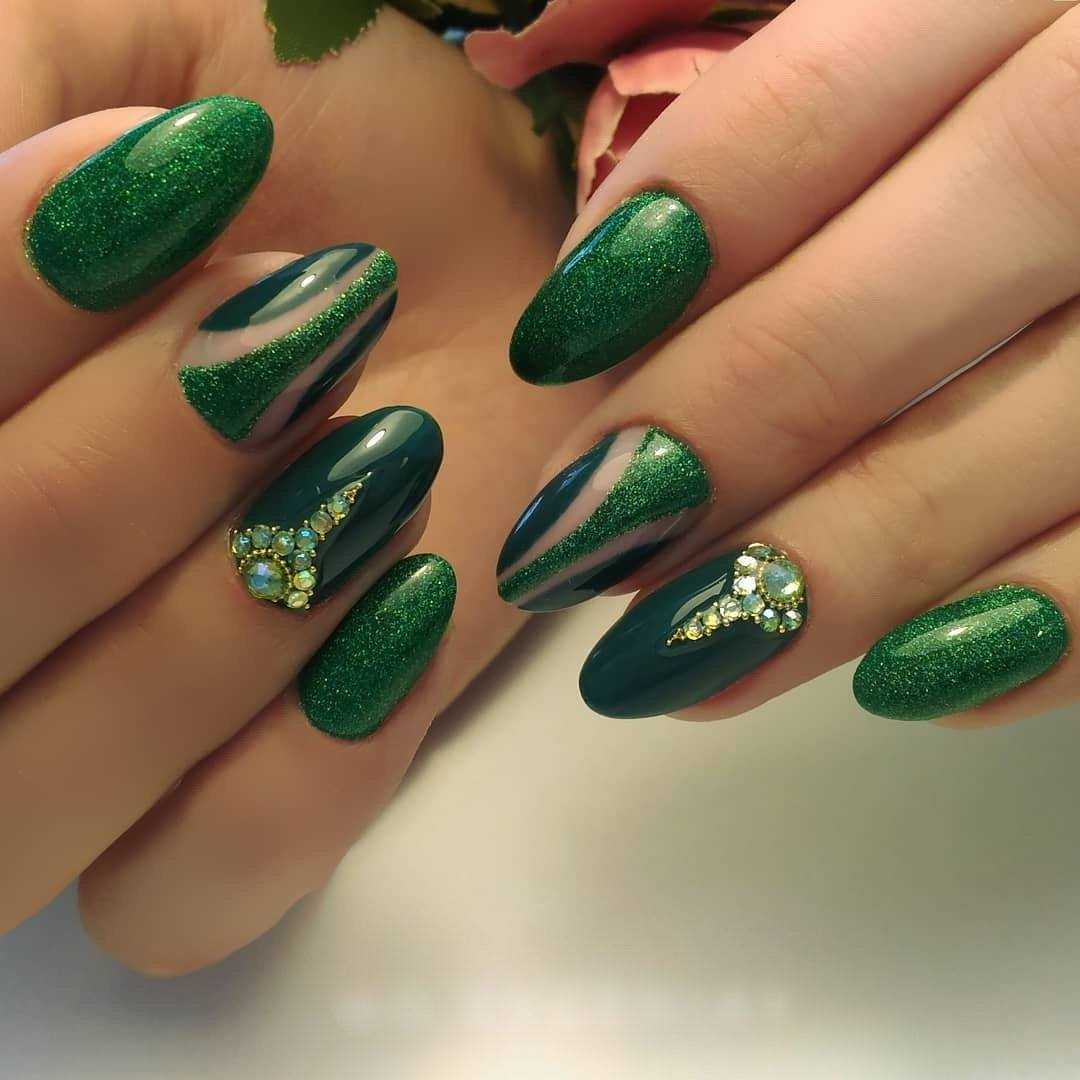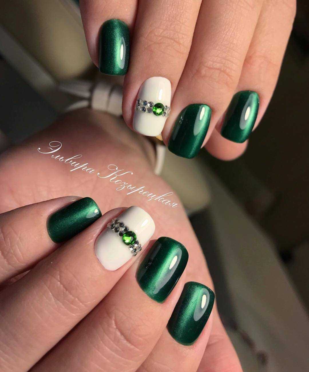 Дизайн «кошачий глаз» не теряет своей привлекательности и популярности среди поклонниц маникюра уже несколько лет. Красивая игра цвета, объемный эффект, изысканный блеск хороши в любом оттенке, но в зеленом великолепны по-особенному. Оттенков зеленого «кошачьего глаза» превеликое множество: от темно-зеленого и хаки до оливкового, салатового и мятного.