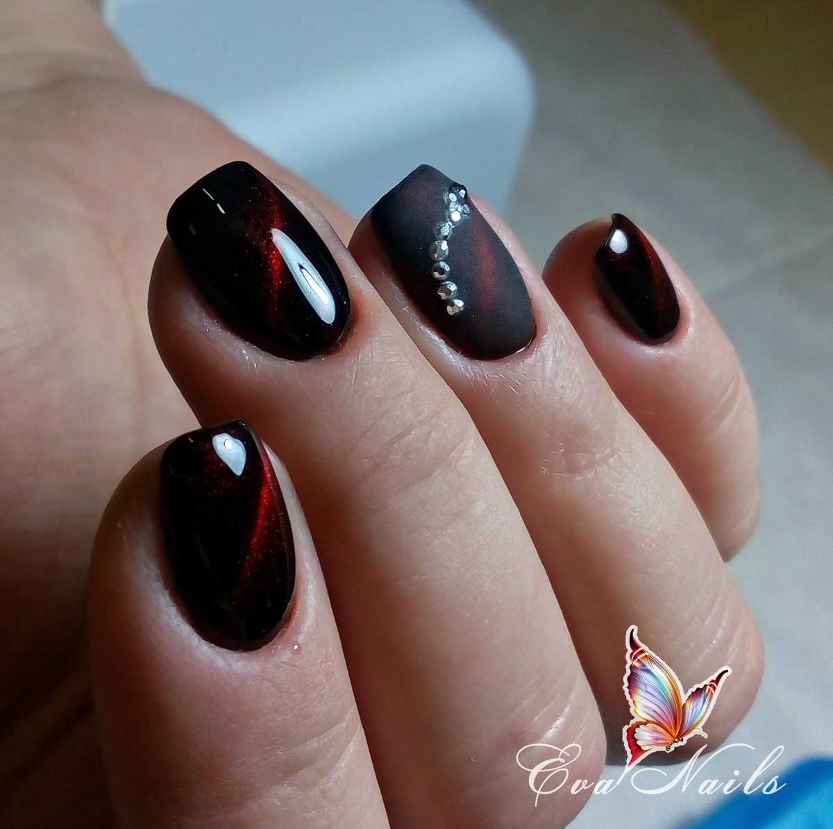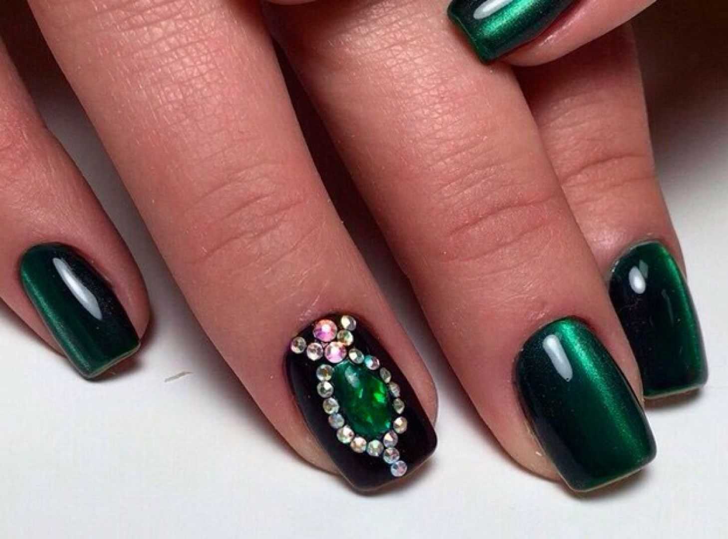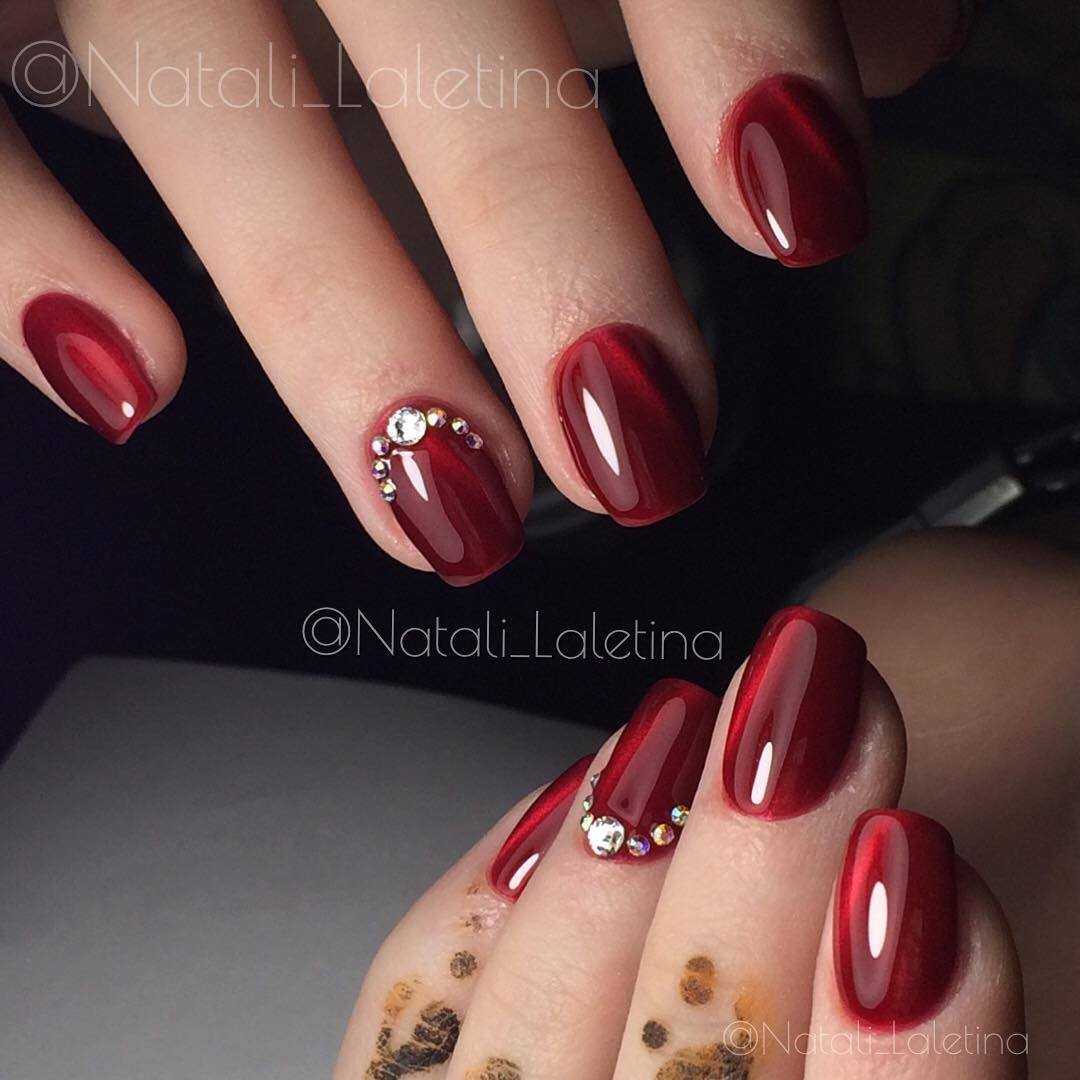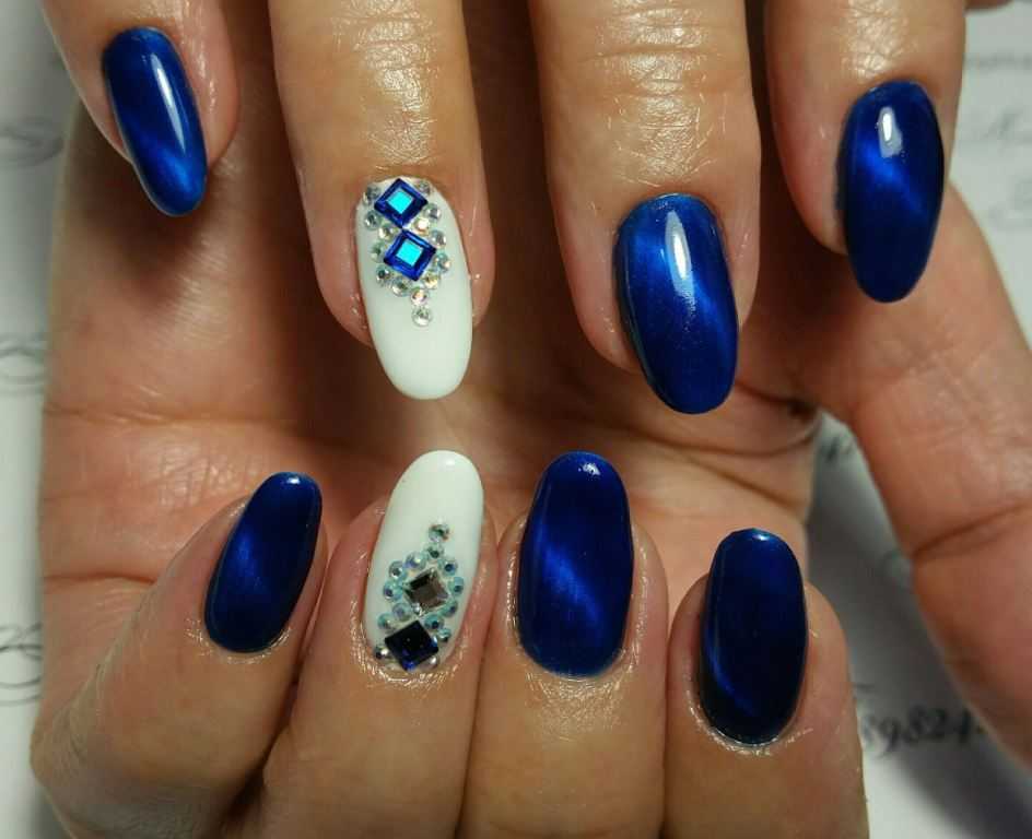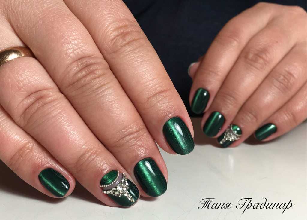 Маникюр кошачий глаз со стразами 2018