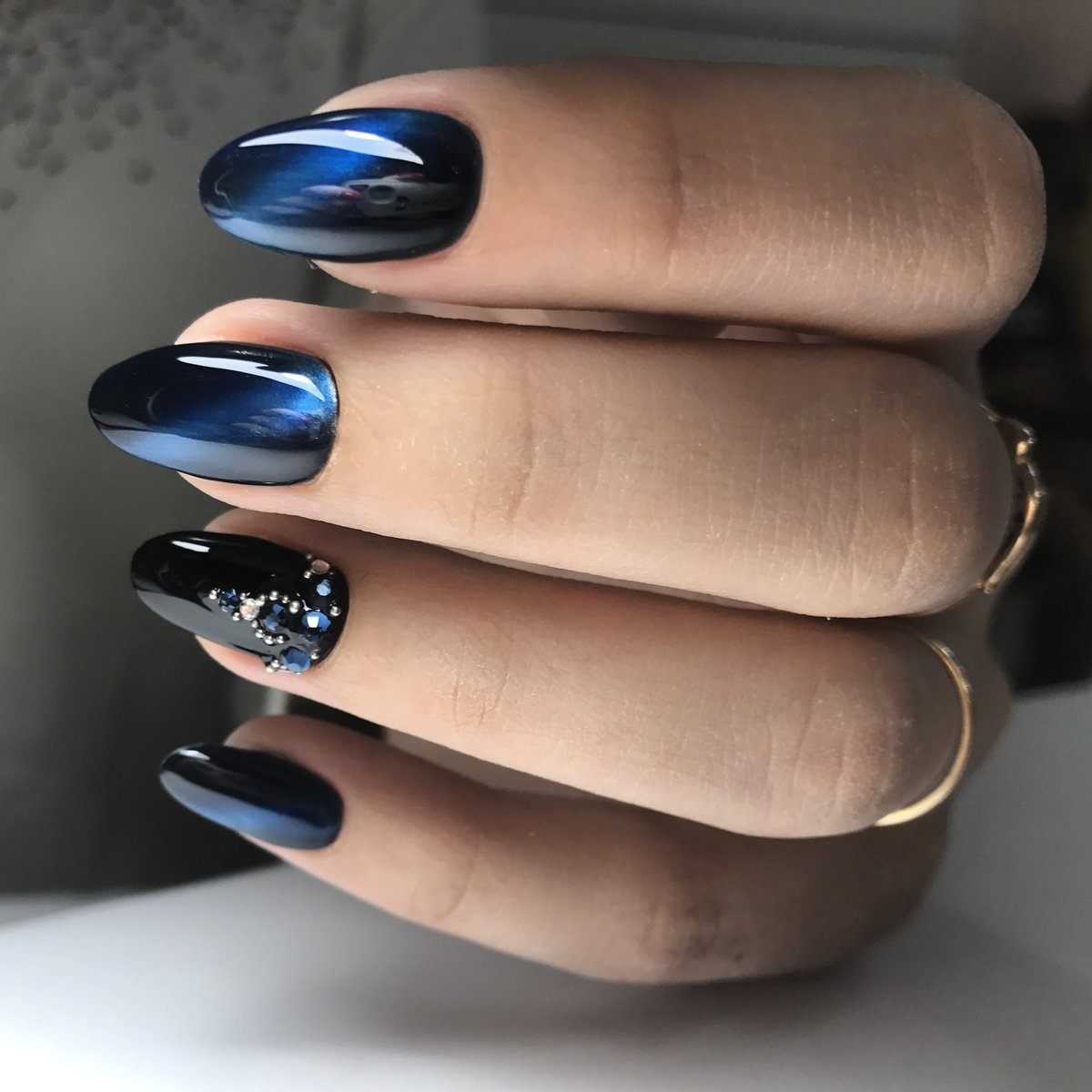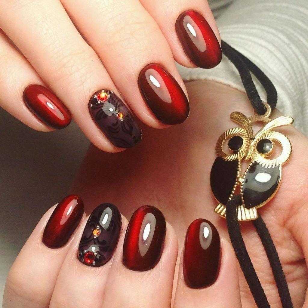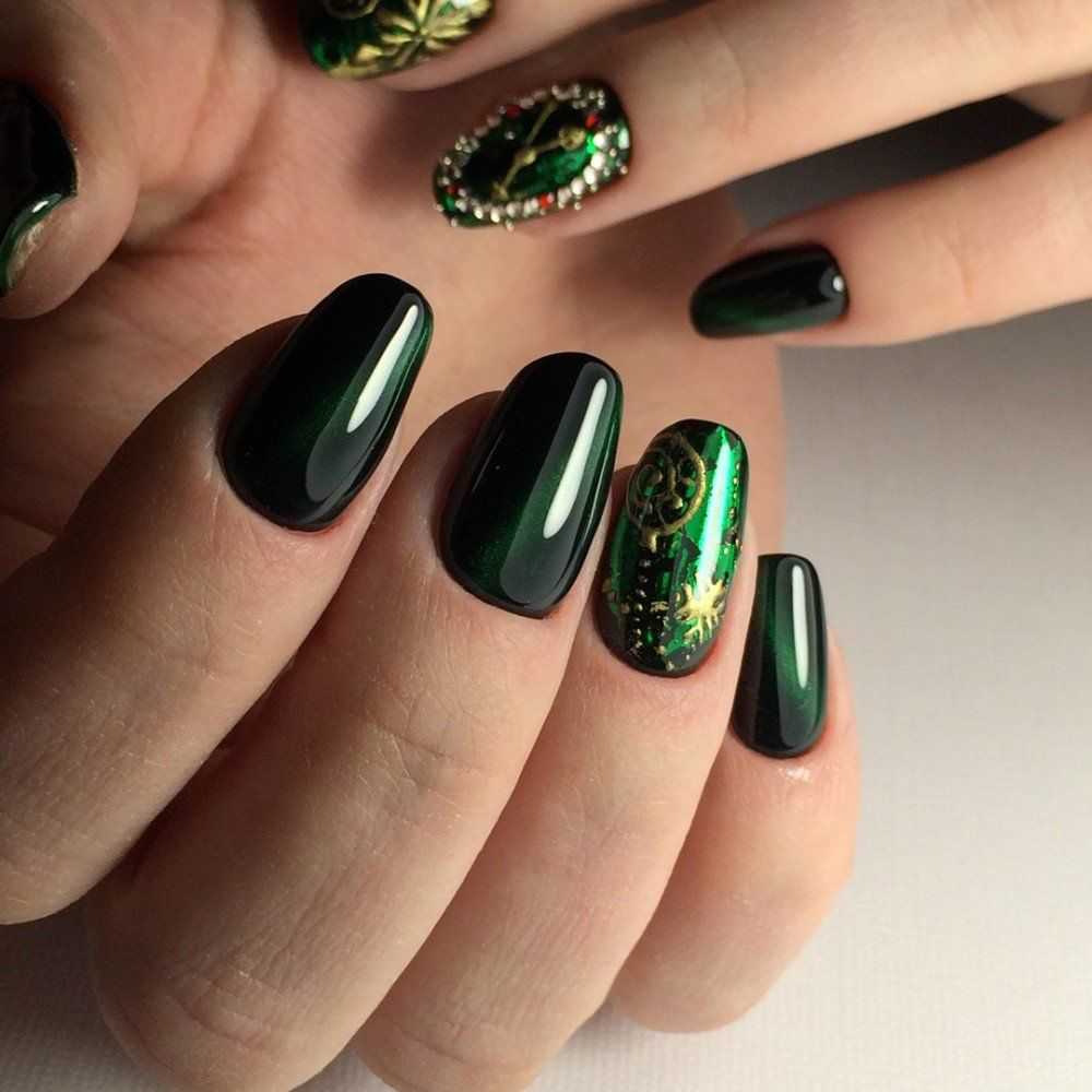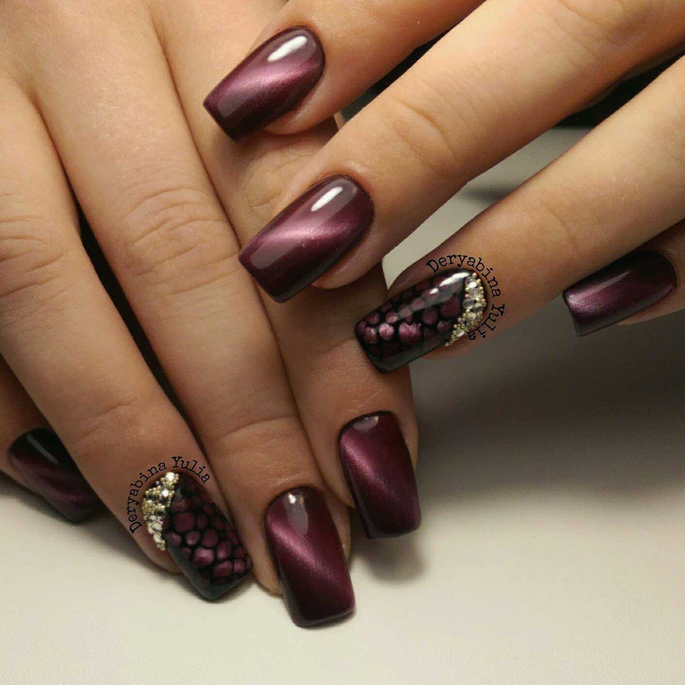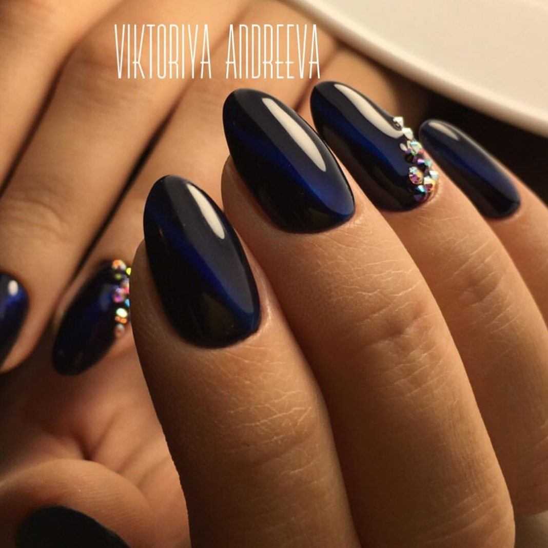 Маникюр кошачий глаз со стразами 2018