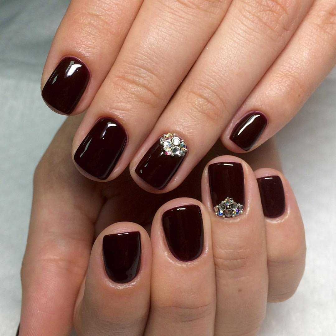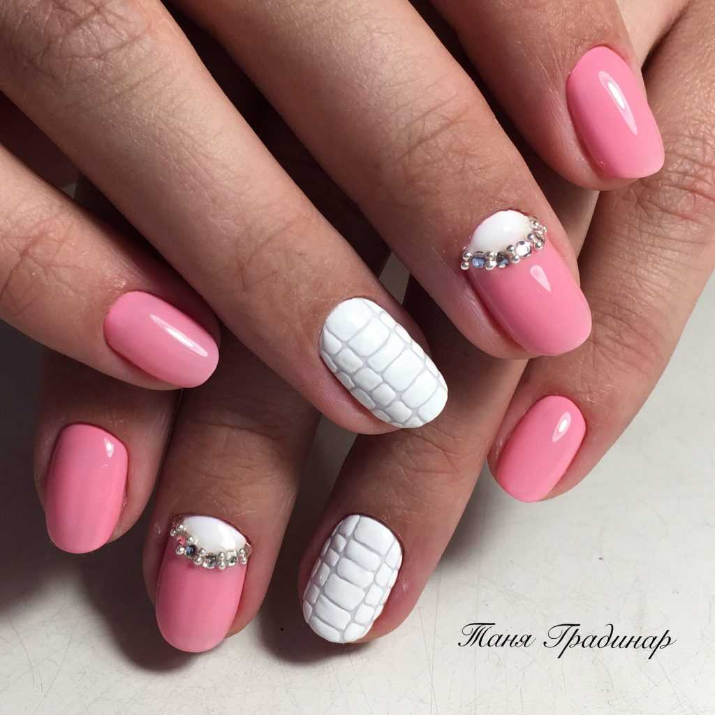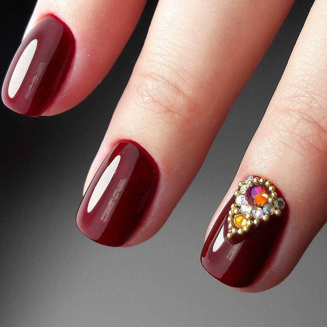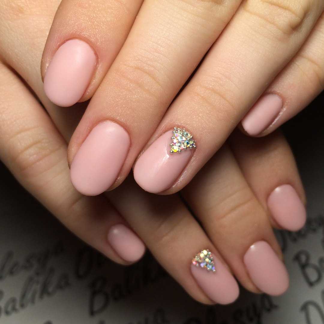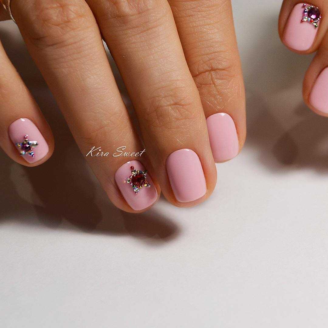 Маникюр гель-лаком на короткие ногти, украшенный стразами