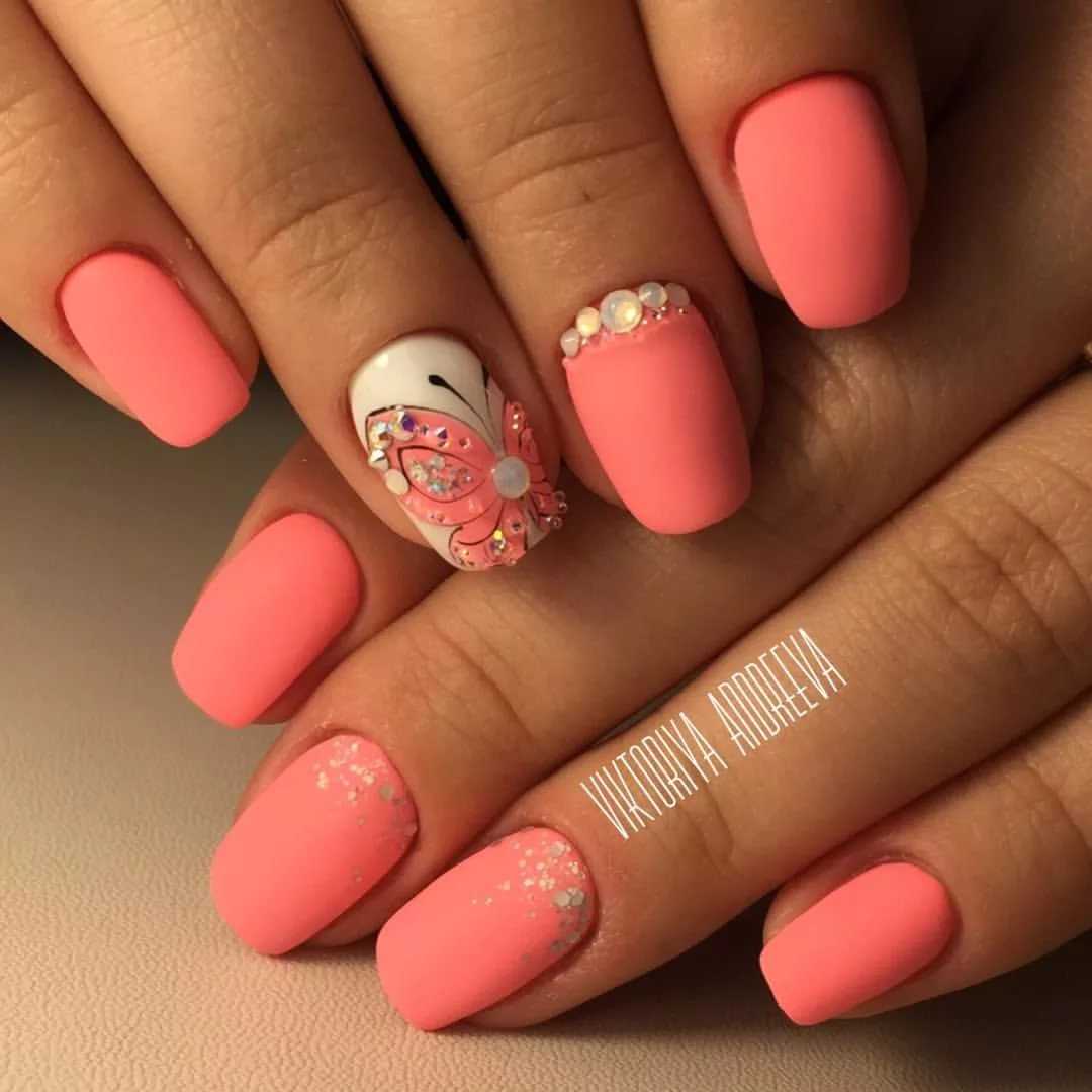 Летний маникюр с гель-лаком и стразами