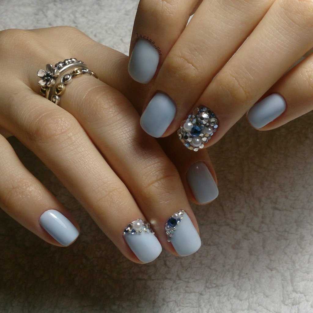 В 2020 году маникюр с дополнением в виде страз удачно сочетается с различными основными покрытиями ноготков. Мастера нейл-арт индустрии предлагают применение страз из акрила, полимера, циркония или текла. При этом их форма может быть совершенно любой: прямоугольная, круглая, ромбическая, форма капельки или овальная.