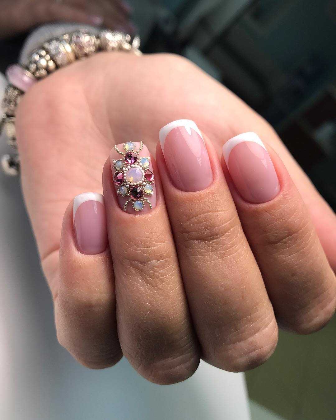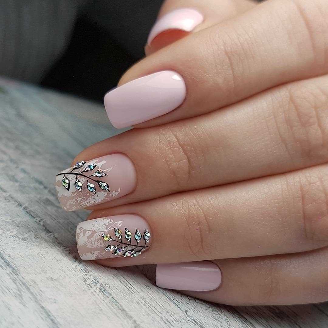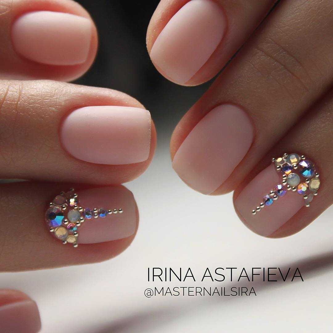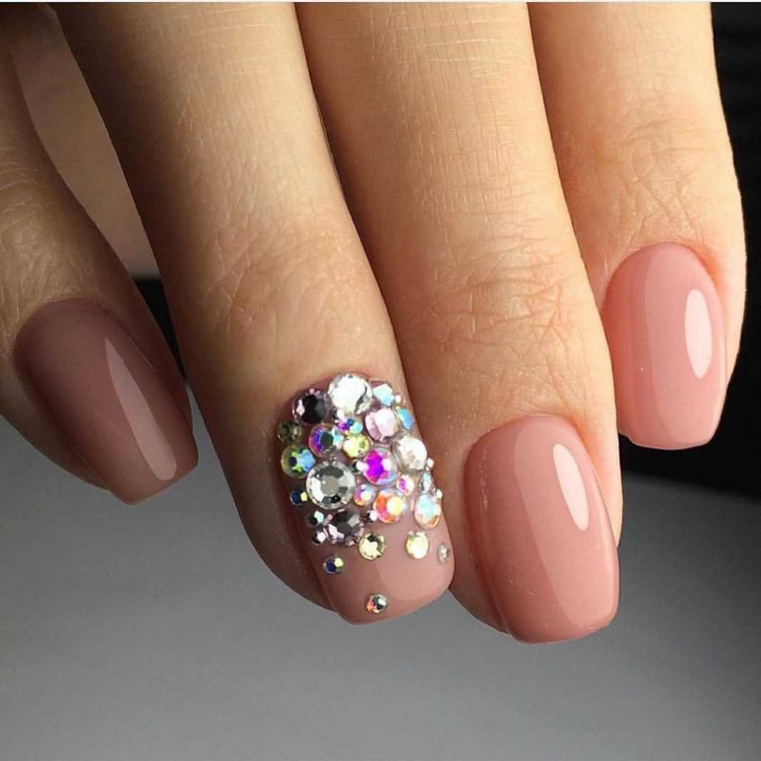 Красивый маникюр со стразами на короткие ногти