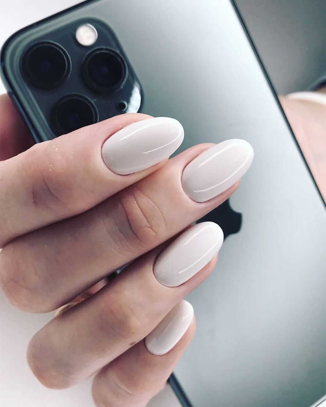 Овальная форма ногтей максимально естественно смотрится на любой длине, поэтому короткие овальные ногти объявлены трендом 2022 года. Такая форма свободного кончика очень красиво сочетается с улыбкой френча и прозрачными лунками, может дополняться узорами из стразов либо бусин и различными рисунками. Особенно впечатляют аккуратные изображения в стиле минимализм, которые нанесены на основание ногтей как парные картинки. К примеру, на одном ногте тонкая веточка расположена по краю пластины, а на другом – у основания.