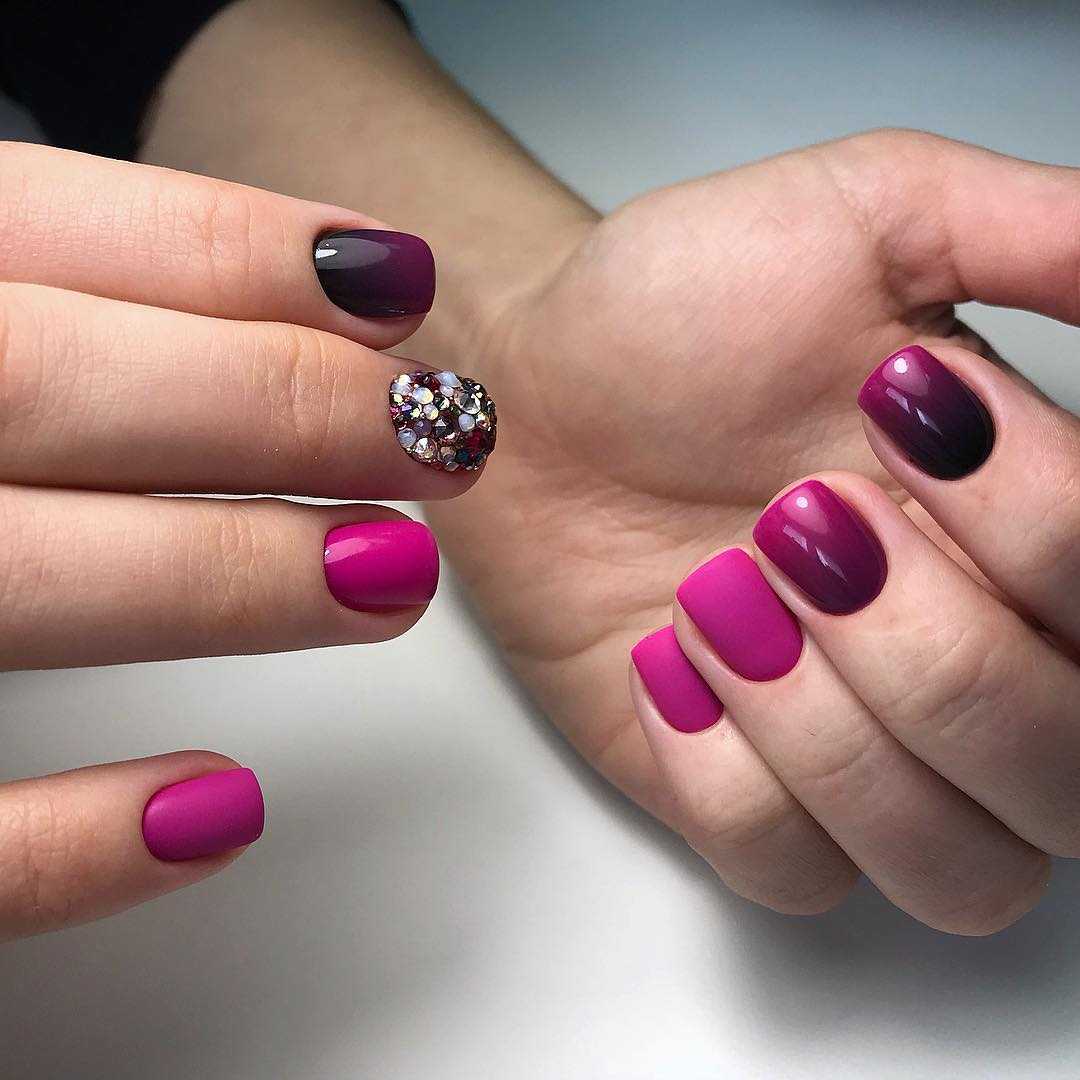 Розовый просто создан для сиреневых тонов. С их помощью можно воплотить в жизнь нежный романтический дизайн маникюра. Стоит руководствоваться правилом — чем темнее и интенсивнее розовый тон, тем темнее и сочнее должен быть фиолетовый.