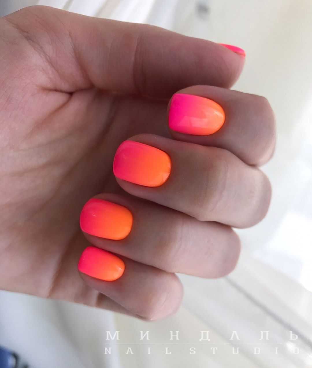 Яркость короткого маникюра этим летом будет зашкаливать. Использовать можно кричащие красные, розовые и кислотные оттенки, которые сочно будут смотреться на руках. Лаконичность такому маникюру придает нейл-техника с градиентом в новом исполнении, например, в виде летних фруктов.