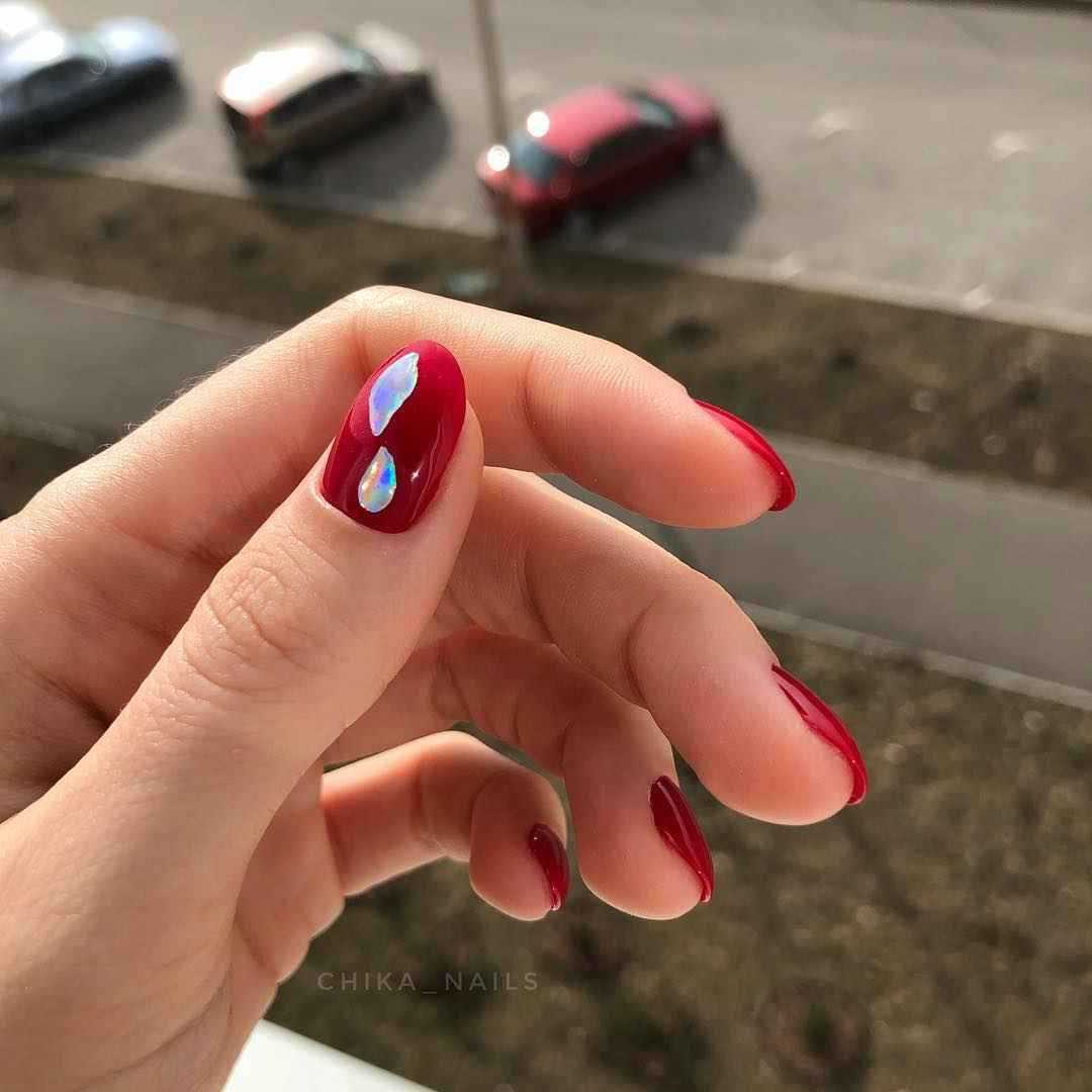 В дизайне можно использовать фольгу, нюд, глиттер, «негативное пространство» или матовый эффект для бархатных ногтей, популярных в 2019 году.