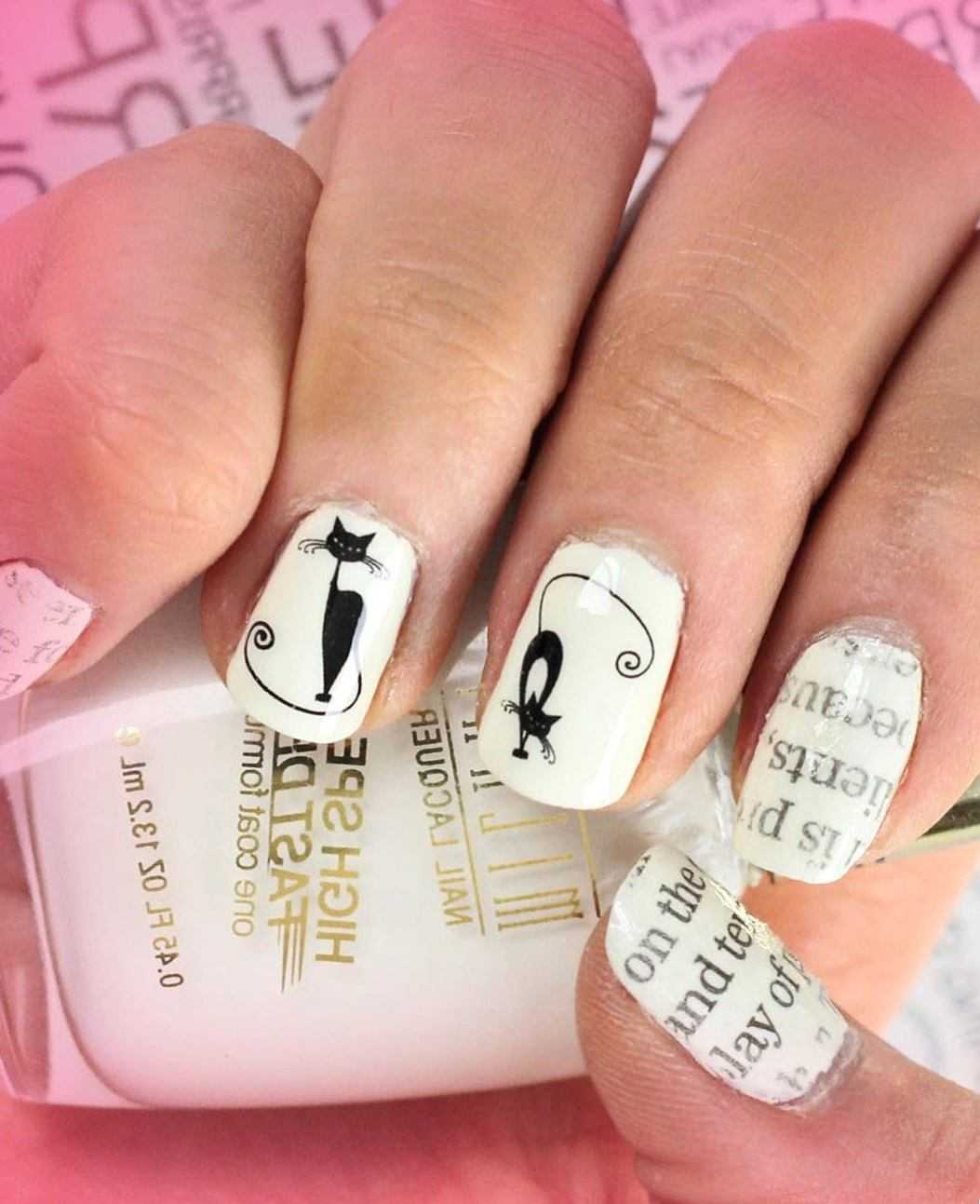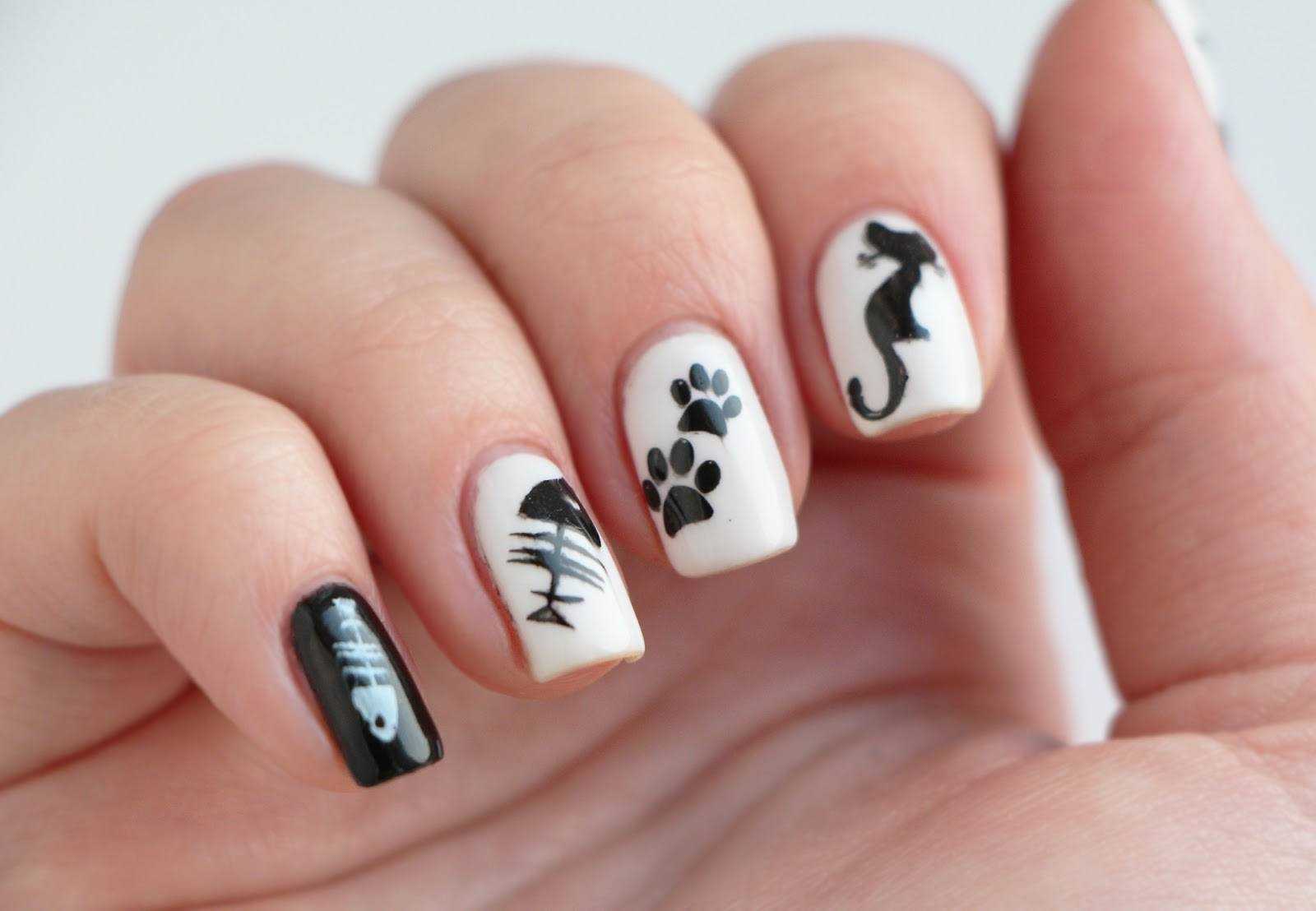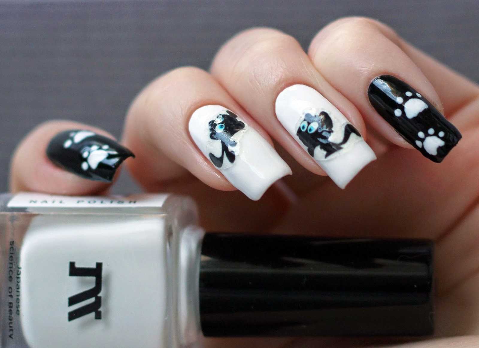 Короткие ноготки не повод отказываться от стильного дизайна с кошками. Чтобы маникюр получился выразительным внесите в него некоторые изменения. Вместо кошки изобразите на ногтях лапки, мордочки или силуэты.