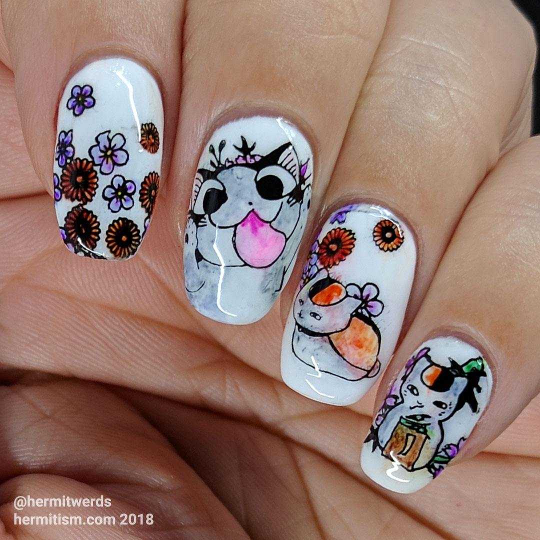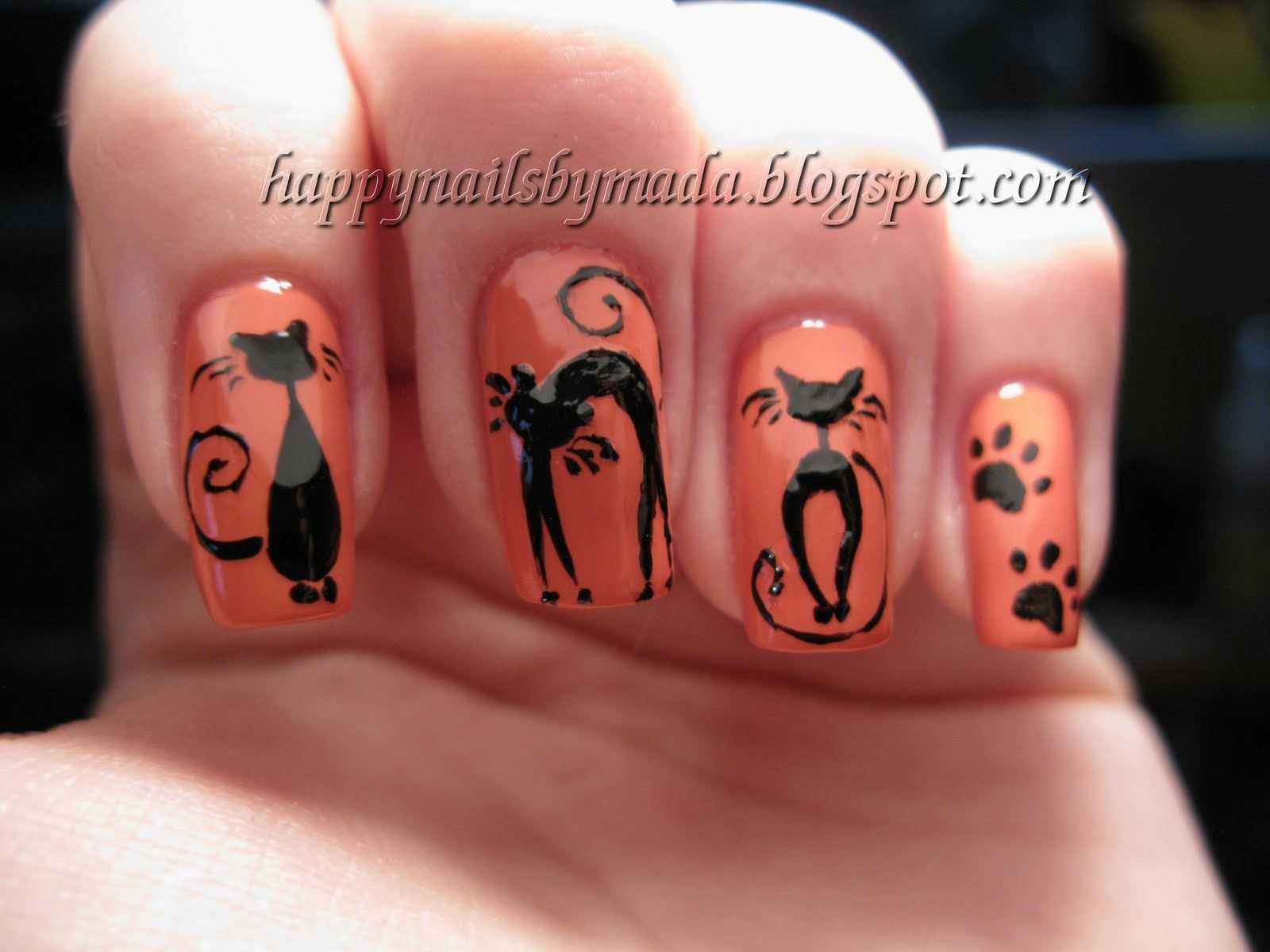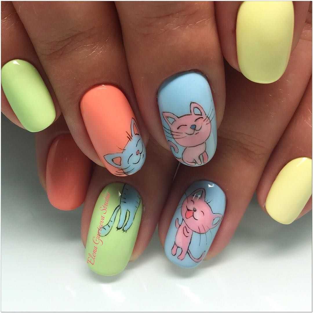 Короткие ноготки не повод отказываться от стильного дизайна с кошками. Чтобы маникюр получился выразительным внесите в него некоторые изменения. Вместо кошки изобразите на ногтях лапки, мордочки или силуэты.