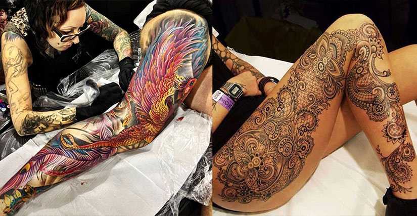 При необходимости, рисунок в этой зоне можно легко скрыть, надев штаны или высокую обувь. Поэтому такое тату подойдет даже для тех девушек, которые работают в офисе.