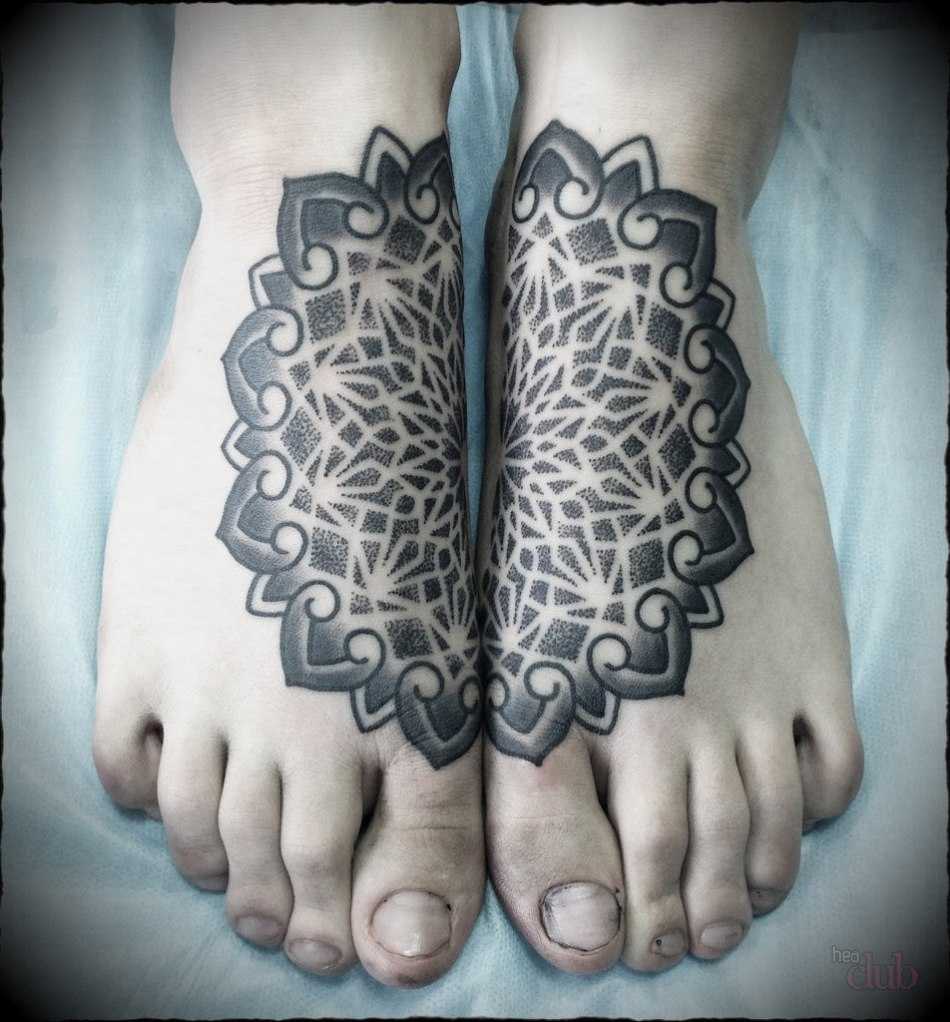Здесь особенно красиво смотрятся различные узоры, орнаменты и цветочные элементы. Эскизы для таких татуировок можно найти в Интернете, либо заказать у художника. Чаще всего вокруг лодыжки размещают черно-белые или цветные браслеты, надписи с переводом на латыни, либо же нежные линии или абстракцию.