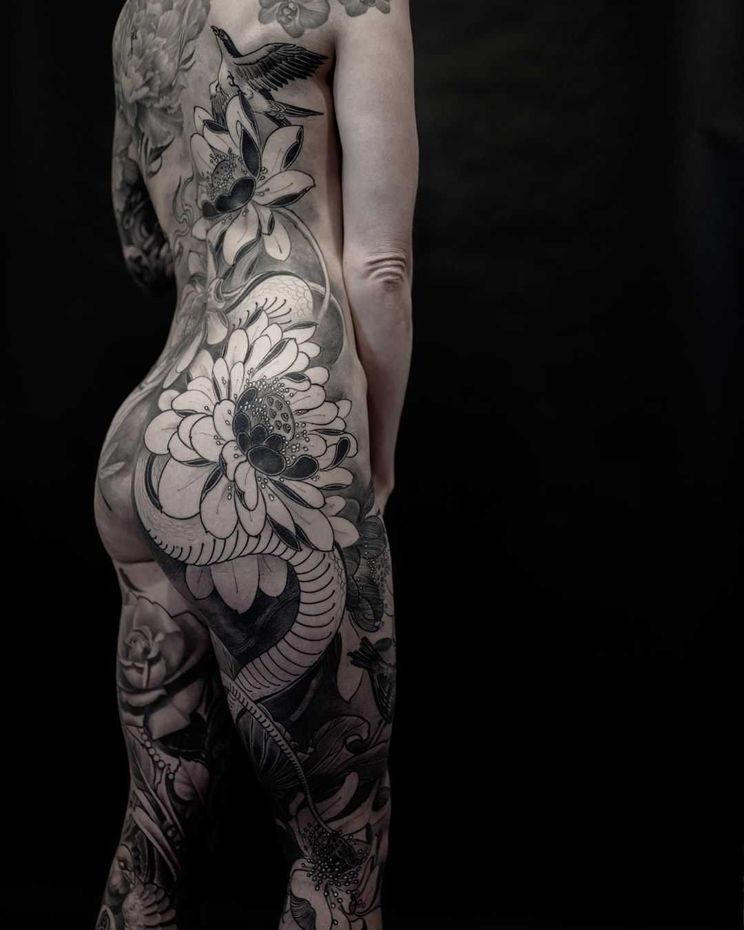 Крупные изображения принято наносит на спину, бока или поясницу.