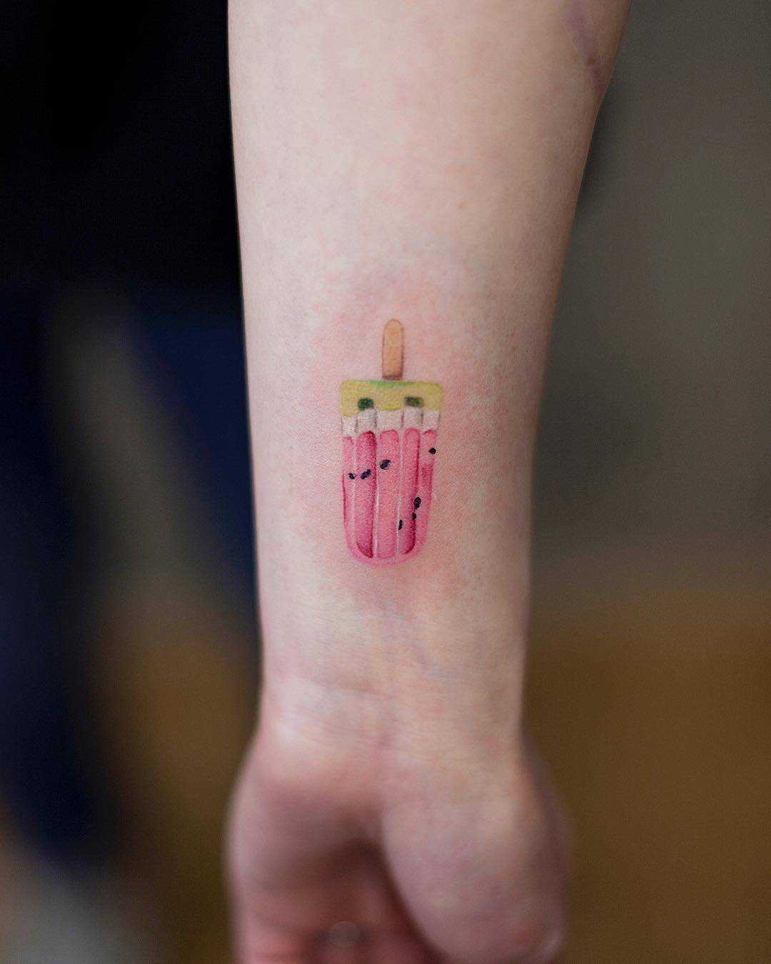 Миниатюрные и крохотные эскизы идеально смотрятся за ухом, на запястье или лодыжке.