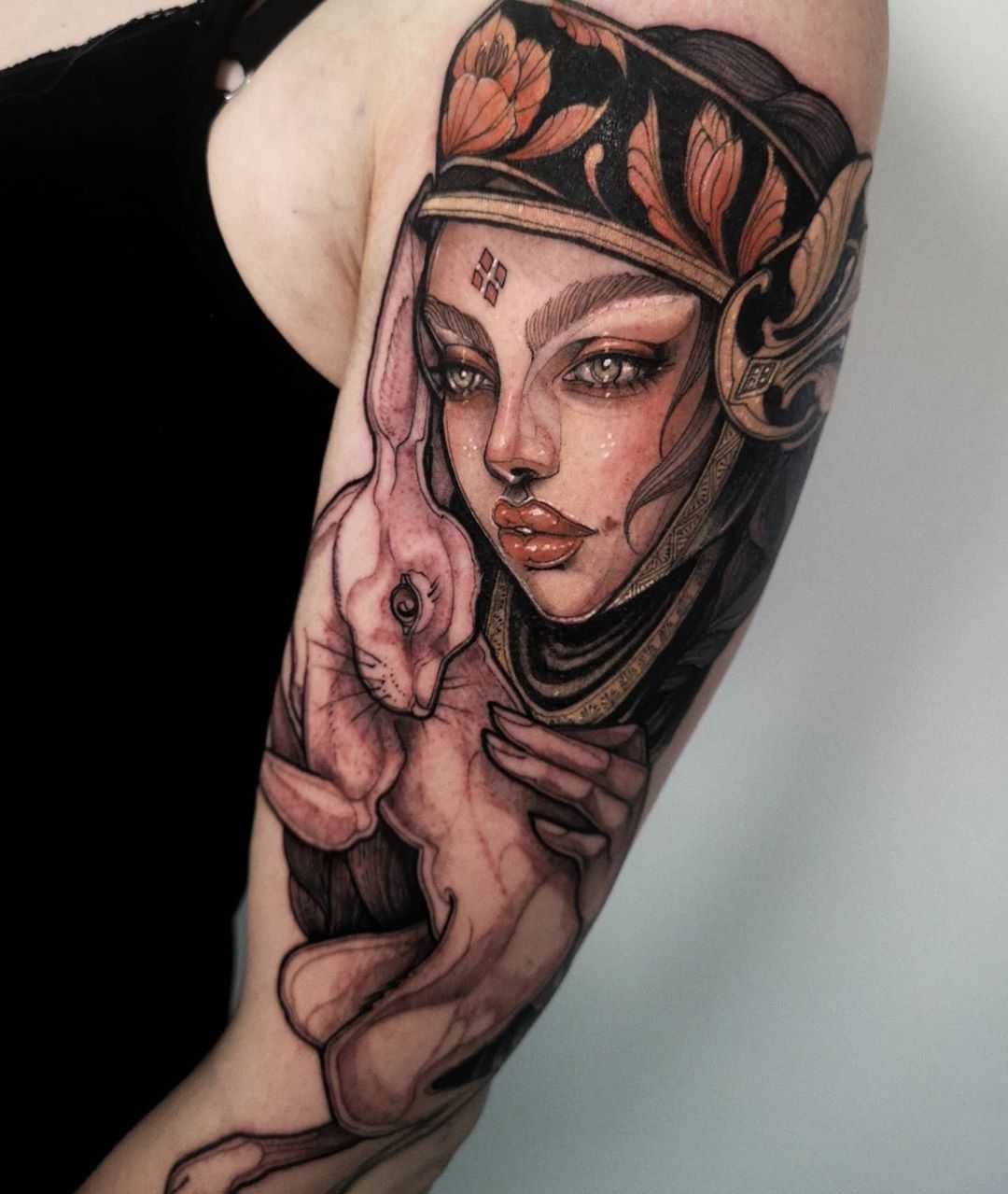 Художница по имени Джио Майя, родом из России, но в раннем детстве переехала с матерью в португалию. Большую часть своей жизни девушка занималась художественным творчеством. А на третьем курсе университета практиковаться в создании тату.
