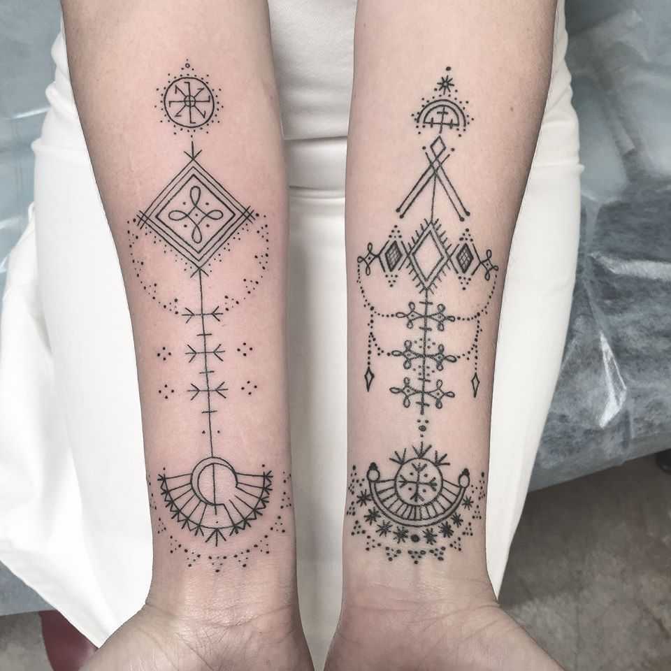 Татуировки, состоящие из различных геометрических фигур, относятся к технике геометрия.