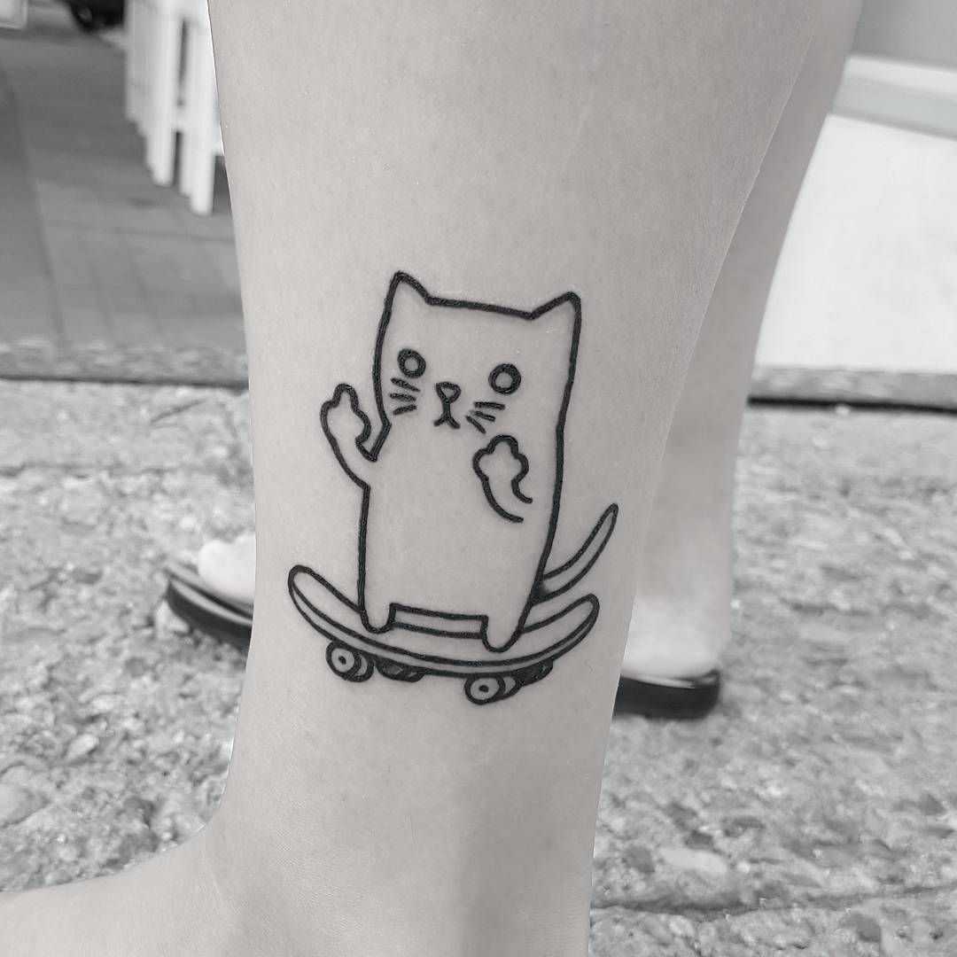 И к самым простым рисункам, но не менее привлекательным, можно отнести изображения, выполненные в стиле хендпоук. Тату подобного характера иногда смотрятся глуповато и зачастую подобные варианты – это просто шуточный или забавный рисунок на теле.