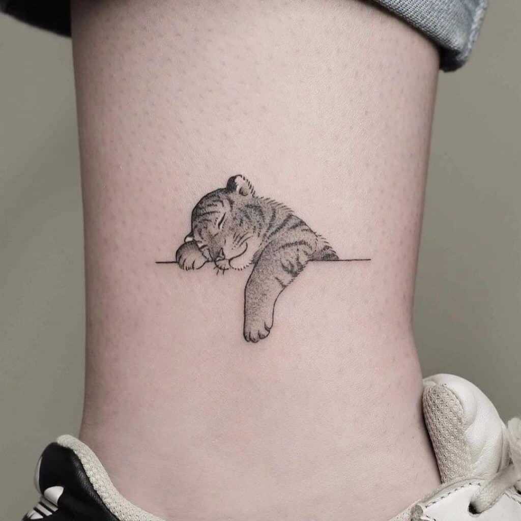 Любители животных оценят и поймут красоту этой татуировки. Это идеальный маленький кусочек для всех, кто любит тигров и любит их красоту, а также для тех, кто любит дикую природу!