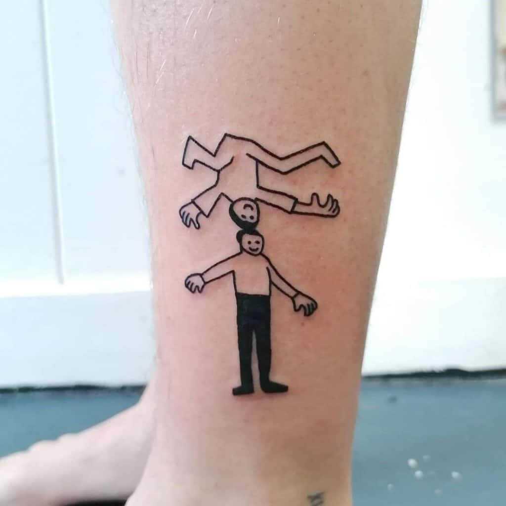 Ты глупый человек? Может быть, ты тот, кто умеет развлекаться, несмотря ни на что? Многим парням понравится эта татуировка черными чернилами, которую вы можете сделать, если у вас есть кто-то особенный, которому можно ее посвятить. Эта татуировка также демонстрирует ваши уникальные навыки и вашу детскую сторону.