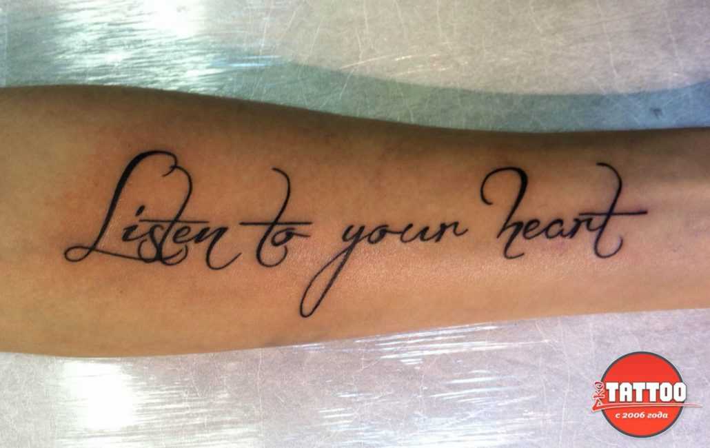 Это может быть девиз, имя любимого человека или слова из любимой песни. Главное помнить, что нанесенный текст останется навсегда. Поэтому к выбору стоит подойти очень ответственно.