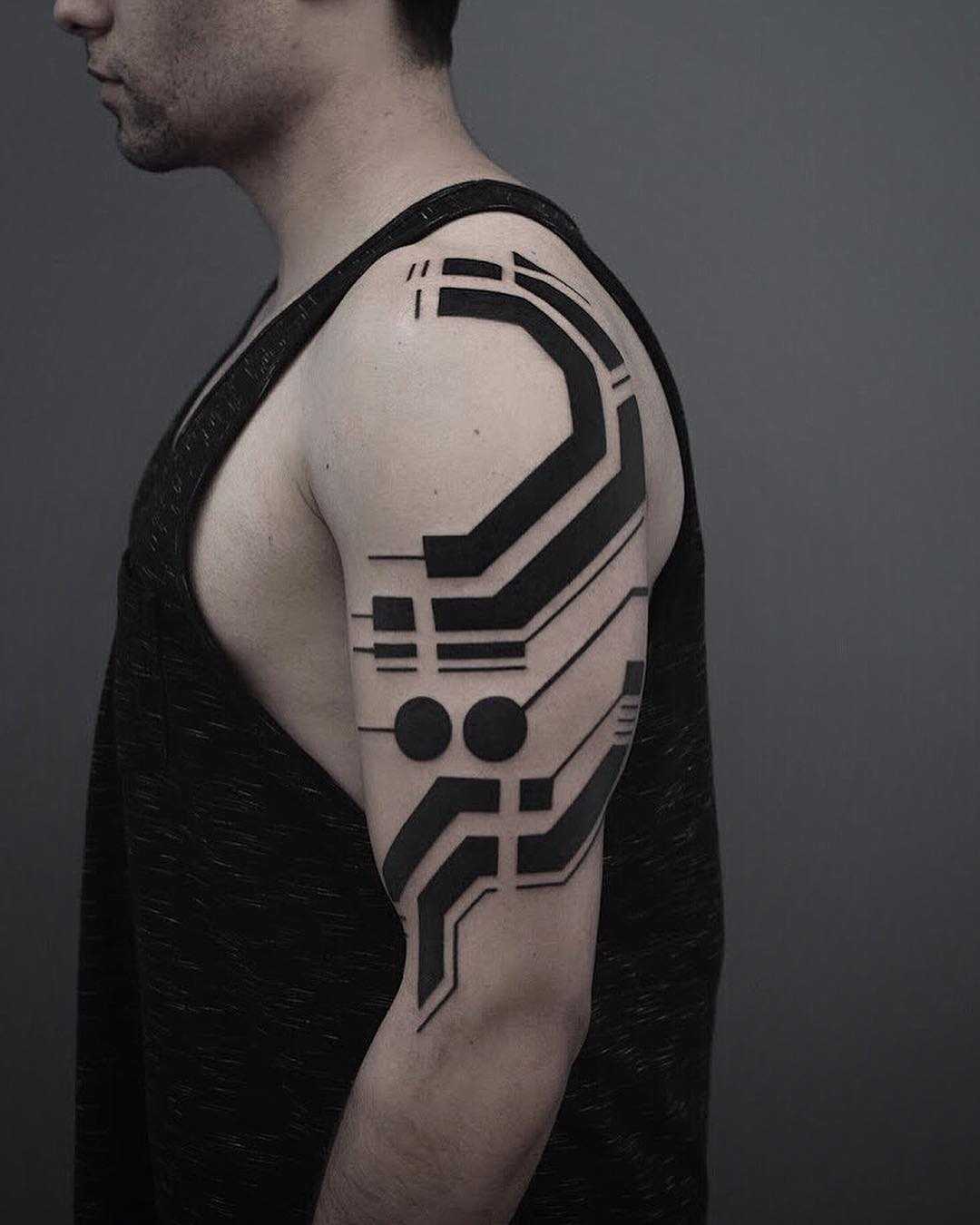 Татуировки, состоящие из различных геометрических фигур, относятся к технике геометрия.
