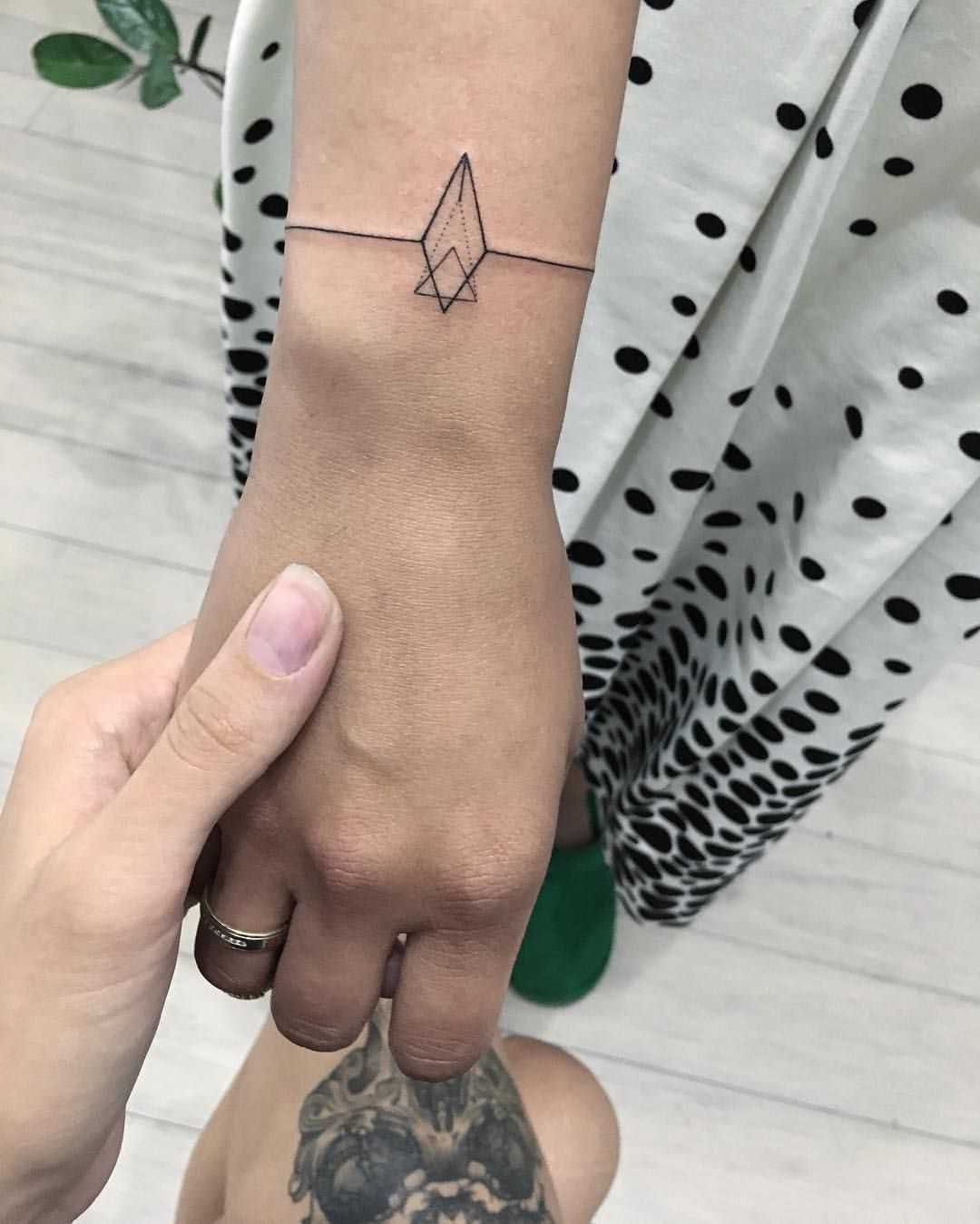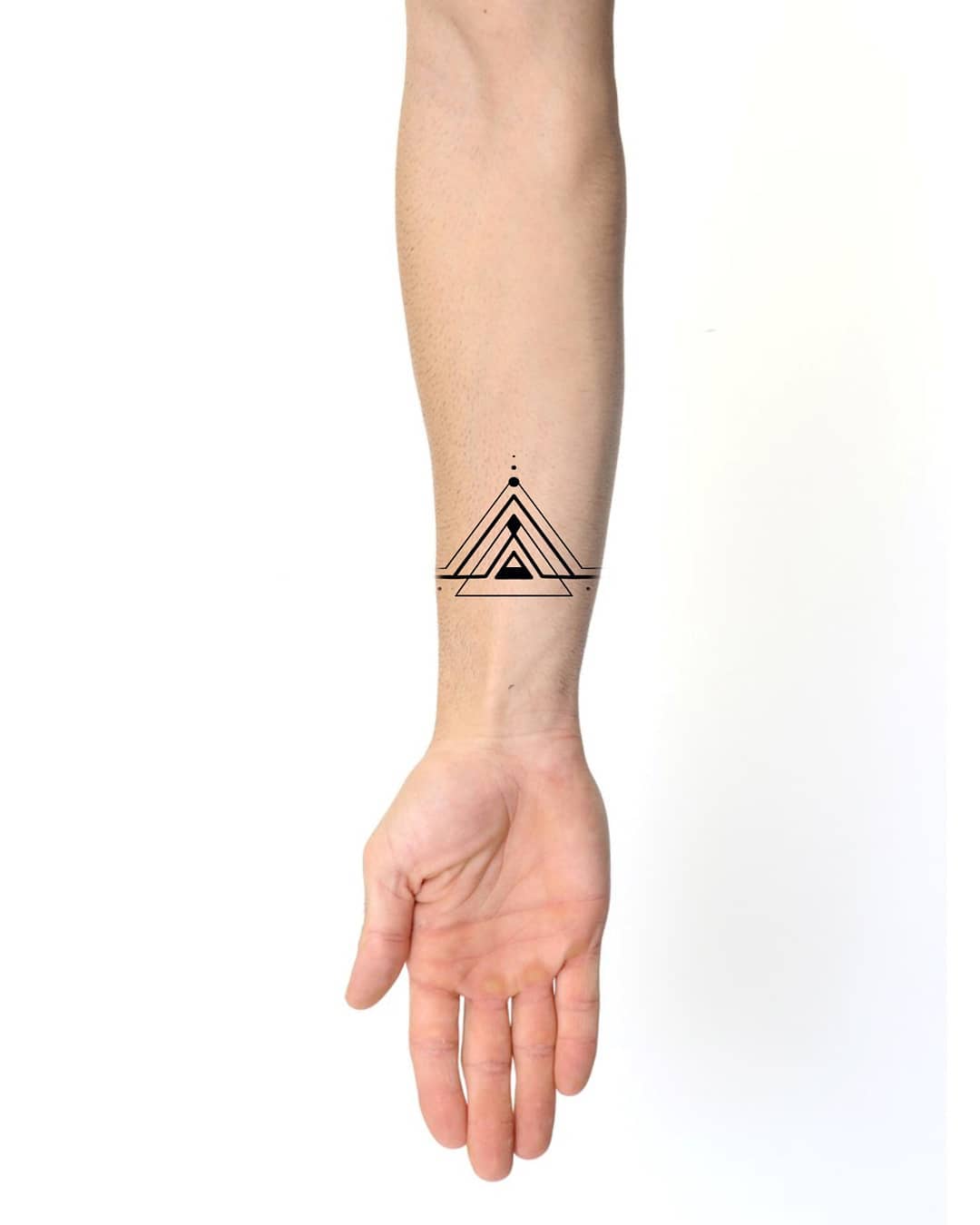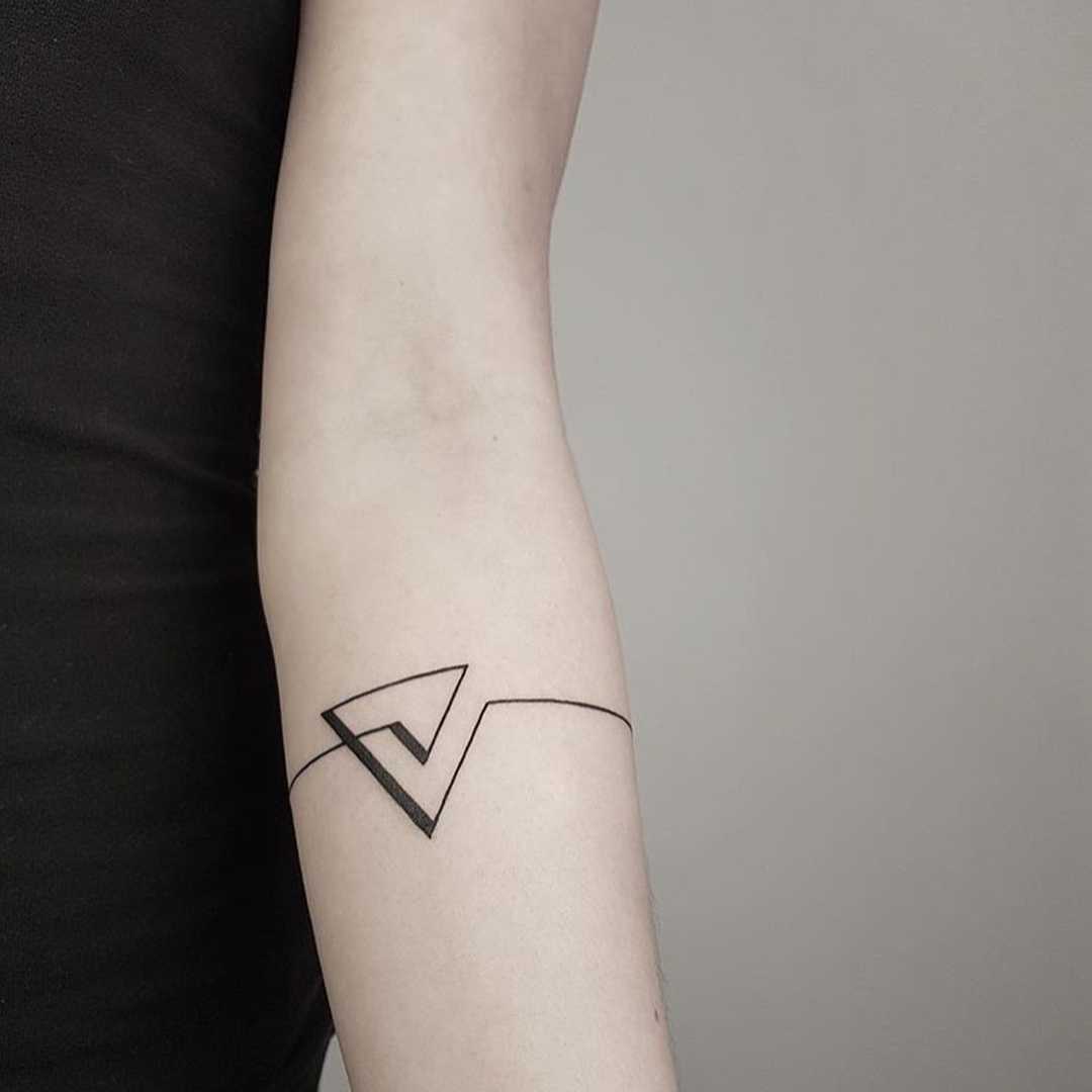 - Ещё отличный вариант — геометрические фигуры, которые прекрасно украсят предплечье. Популярны скандинавские, греческие мотивы.