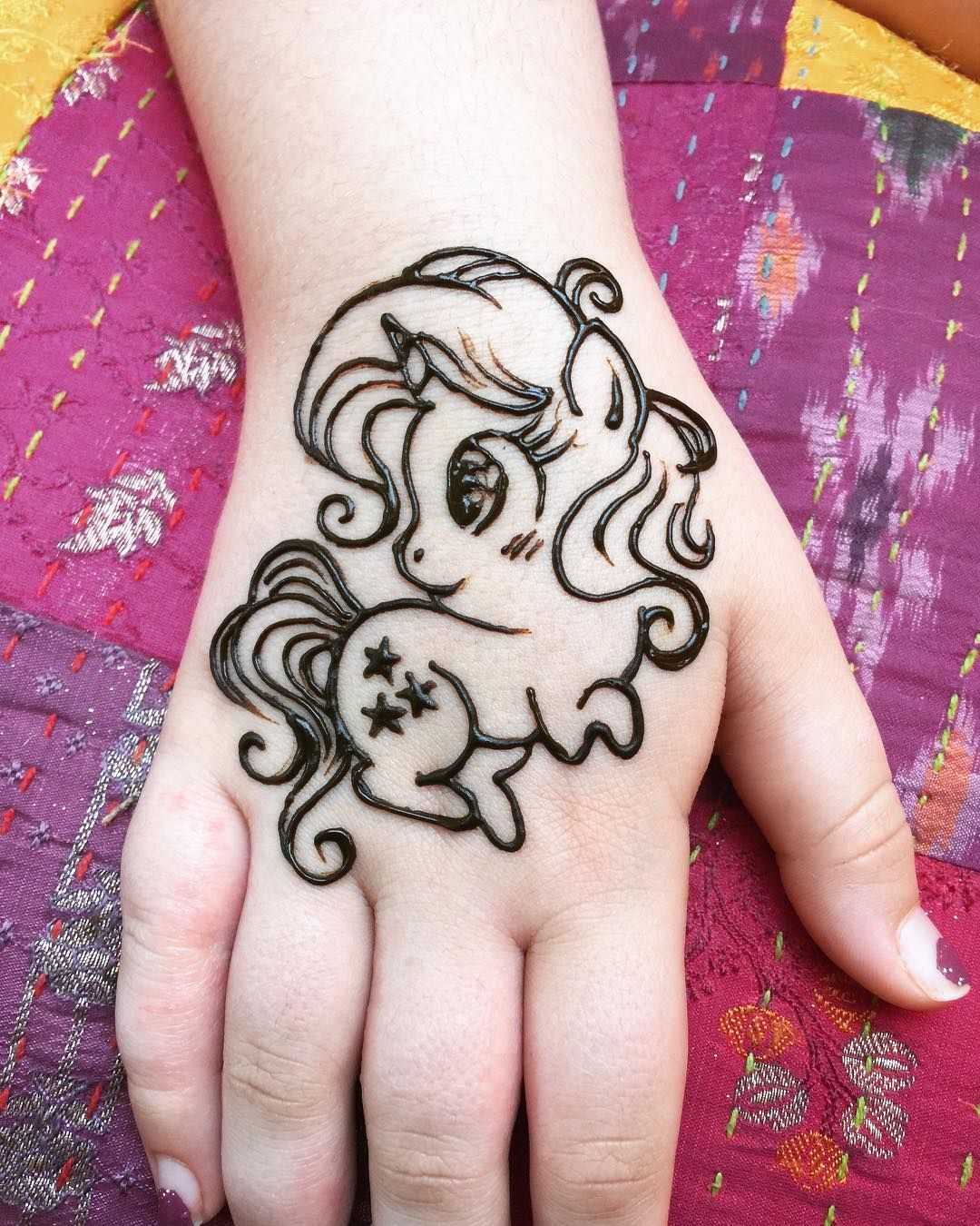 Такое предложение придётся по душе тем, кто не решается украсить своё тело тем или иным рисунком на всю жизнь. Нательные рисунки, выполненные хной в этом случае можно назвать идеальным решением, ведь они держаться на кожных покровах всего несколько недель. Изображения могут быть чёрными, коричневыми или белыми. Размер и место нанесения эскиза хной зависит полностью от вашего желания. Что касается лёгких вариаций рисунков, то к наиболее распространённым идеям можно отнести различные браслеты, изображения колец, флористические мотивы, сказочные персонажи, например, трендовые единороги, надписи и многие другие идеи. Барышни испытывают слабость к оригинальным и изысканным эскизам в стиле мехенди. Мужчины отдают предпочтение различным узорам, подчёркивающим рельефность мышц.