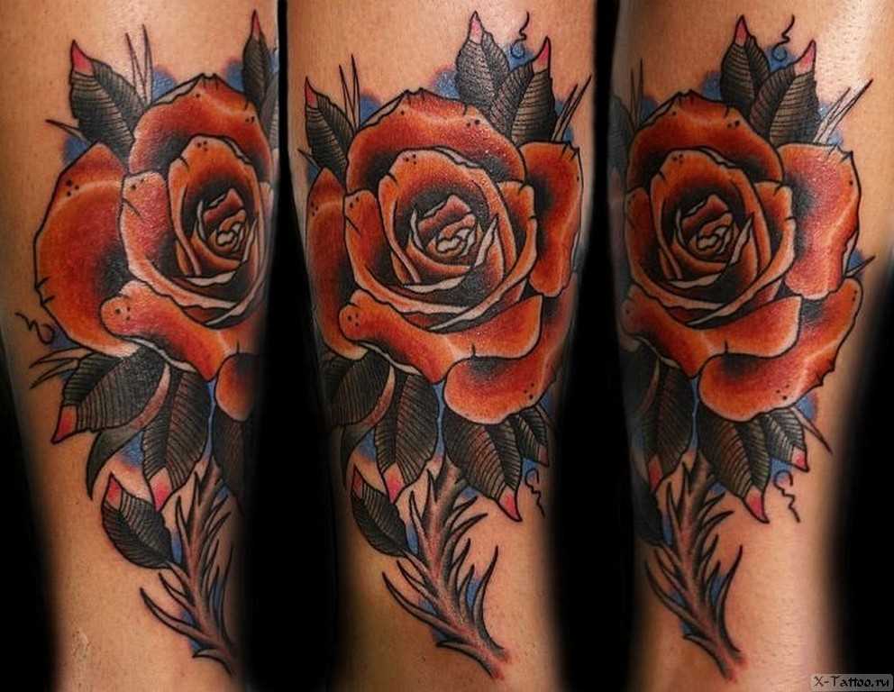 Тату – цветная, черная, белая, черно-белая, синяя, красная, розовая, голубая роза: значение